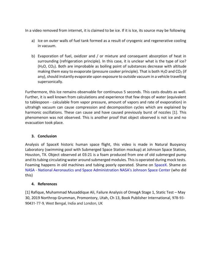 Ice and its source on Engine outer walls – analysis of SpaceX’s first historic human space flight for NASA