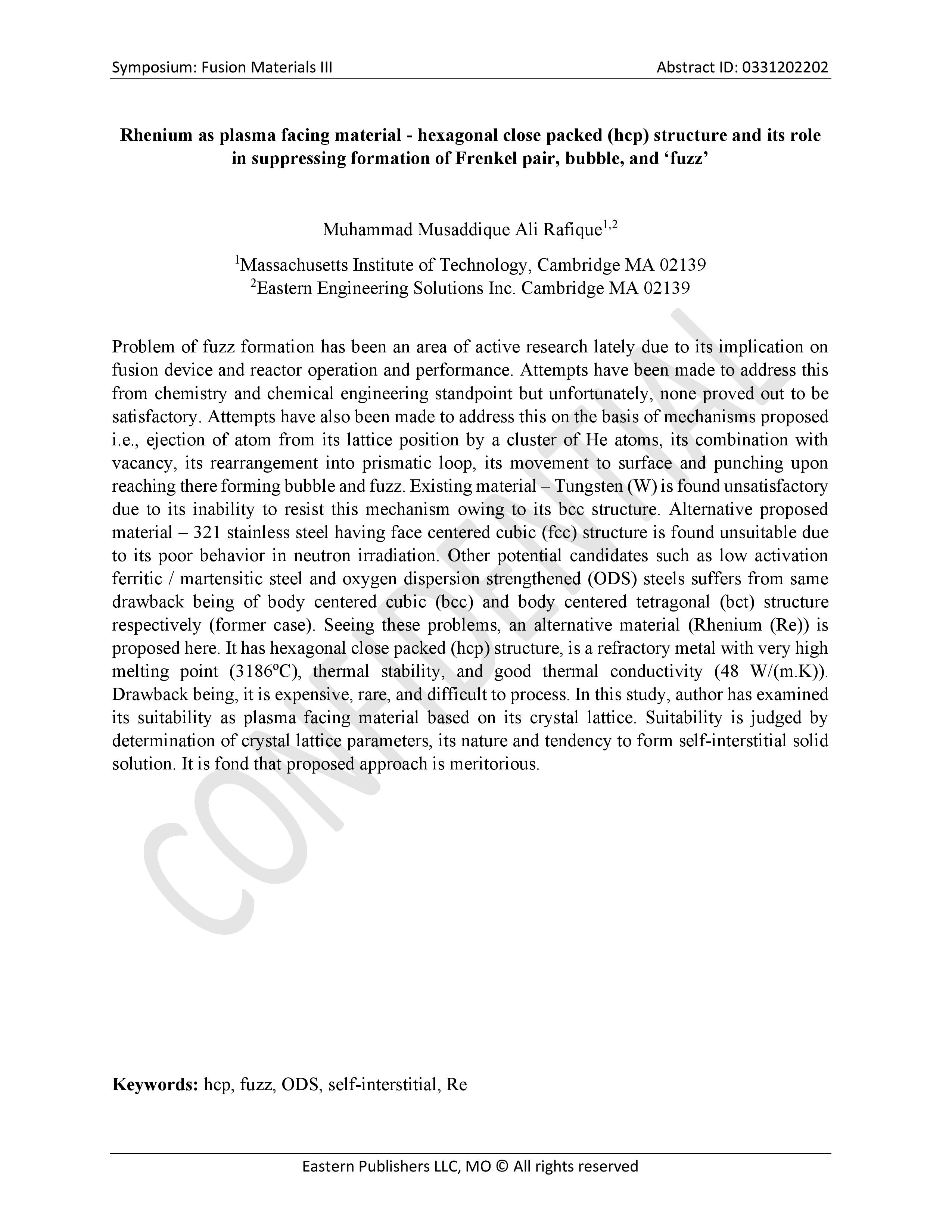 FUSION MATERIALS III, ABSTRACT ID: 0331202202