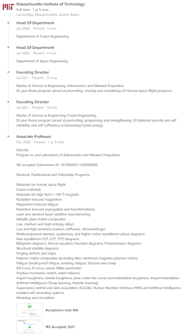 B.Sc. Engg. (Gold Medalist), University of Engineering and Technology (UET) Lahore, Pakistan – Joint European Master in Materials Science (EMMS), Technishe Universität Hamburg Harburg (TUHH), Deutschland, Universidade de Aveiro (UA), Portugal and Aalborg Universitet (AAU), Denamarka – Master (Nanoscience), Euskal Herriko Unibersitatea / Universidad del Pais Vasco (EHU/UPV), Espania – PhD (Aerospace Engineering), RMIT University, Melbourne, Australia