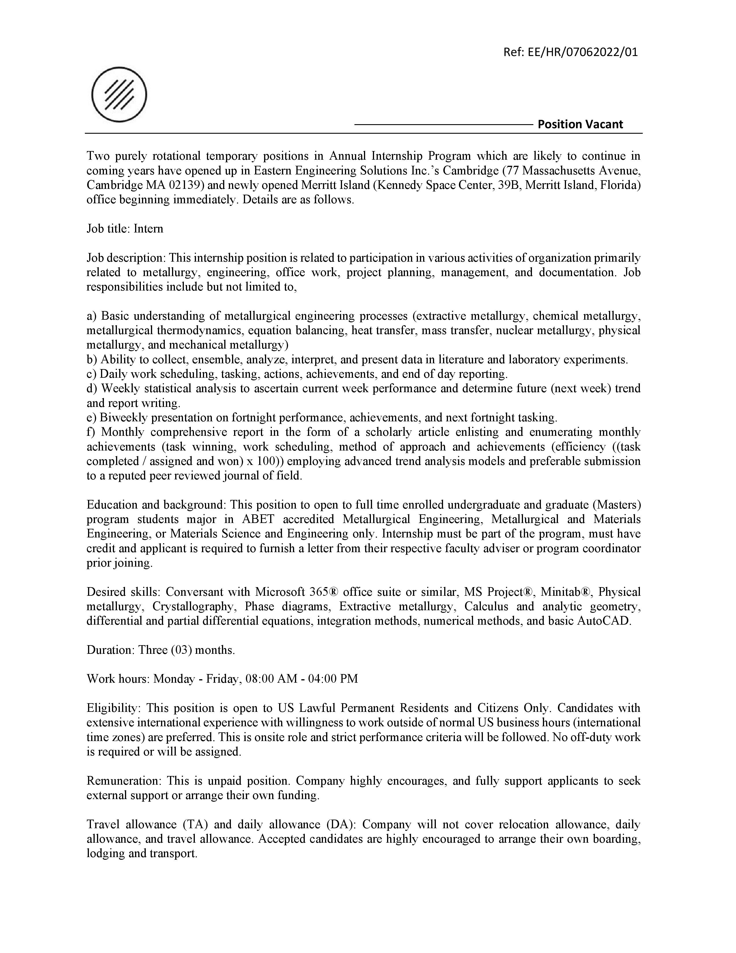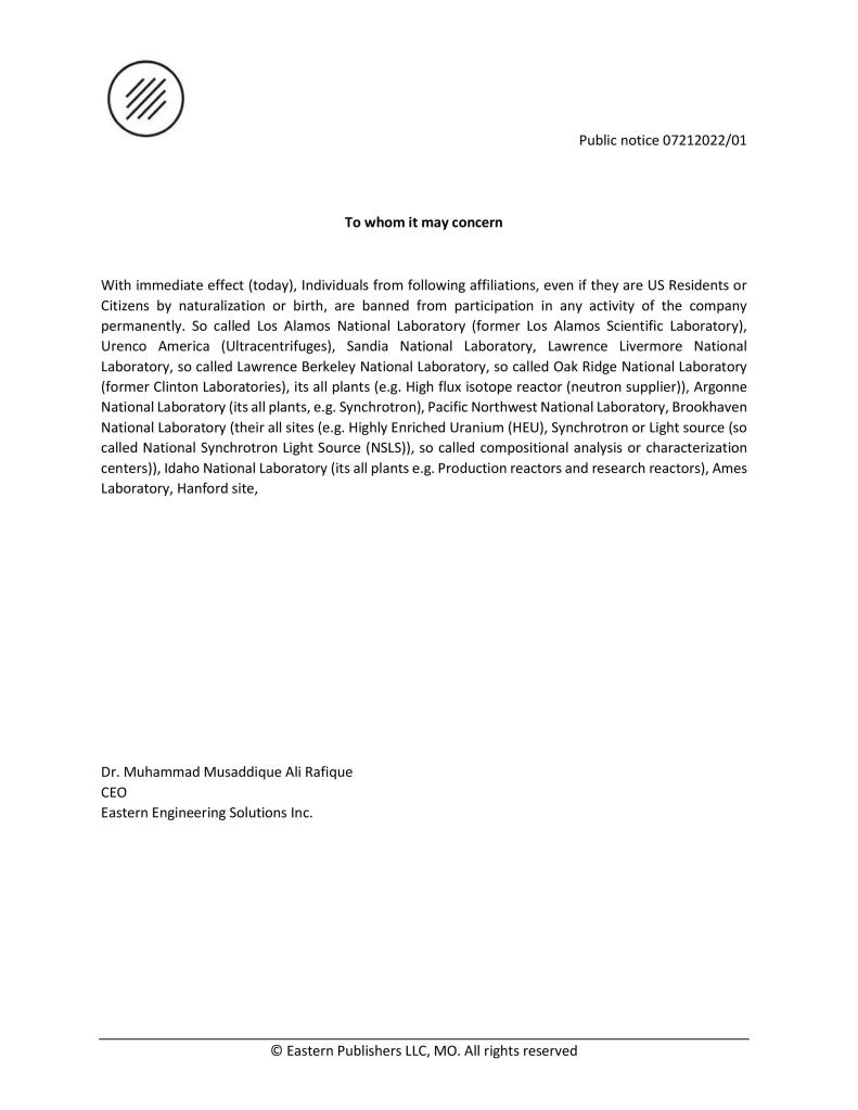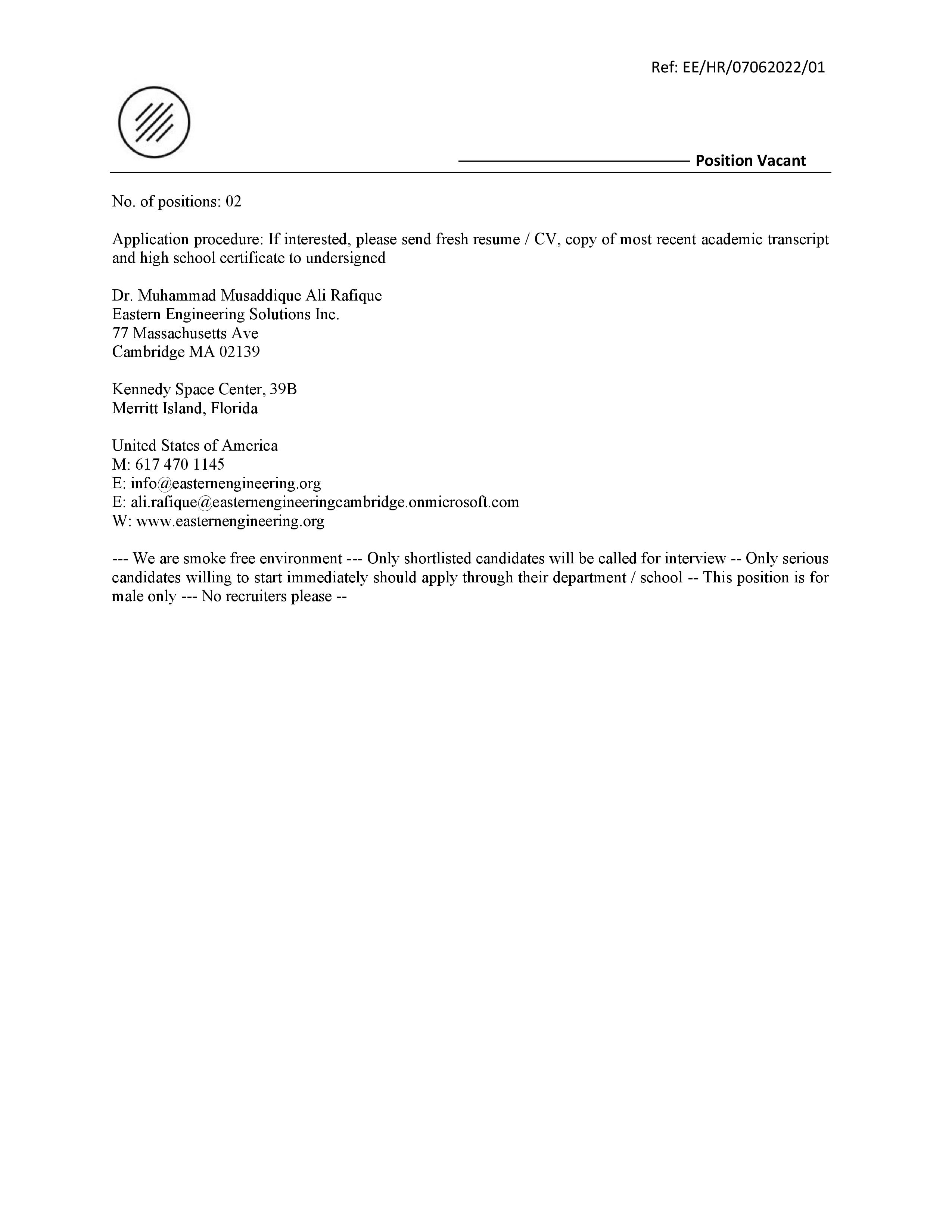 • Eastern Engineering Solutions LLC – Ames – Iowa December 6, 2025