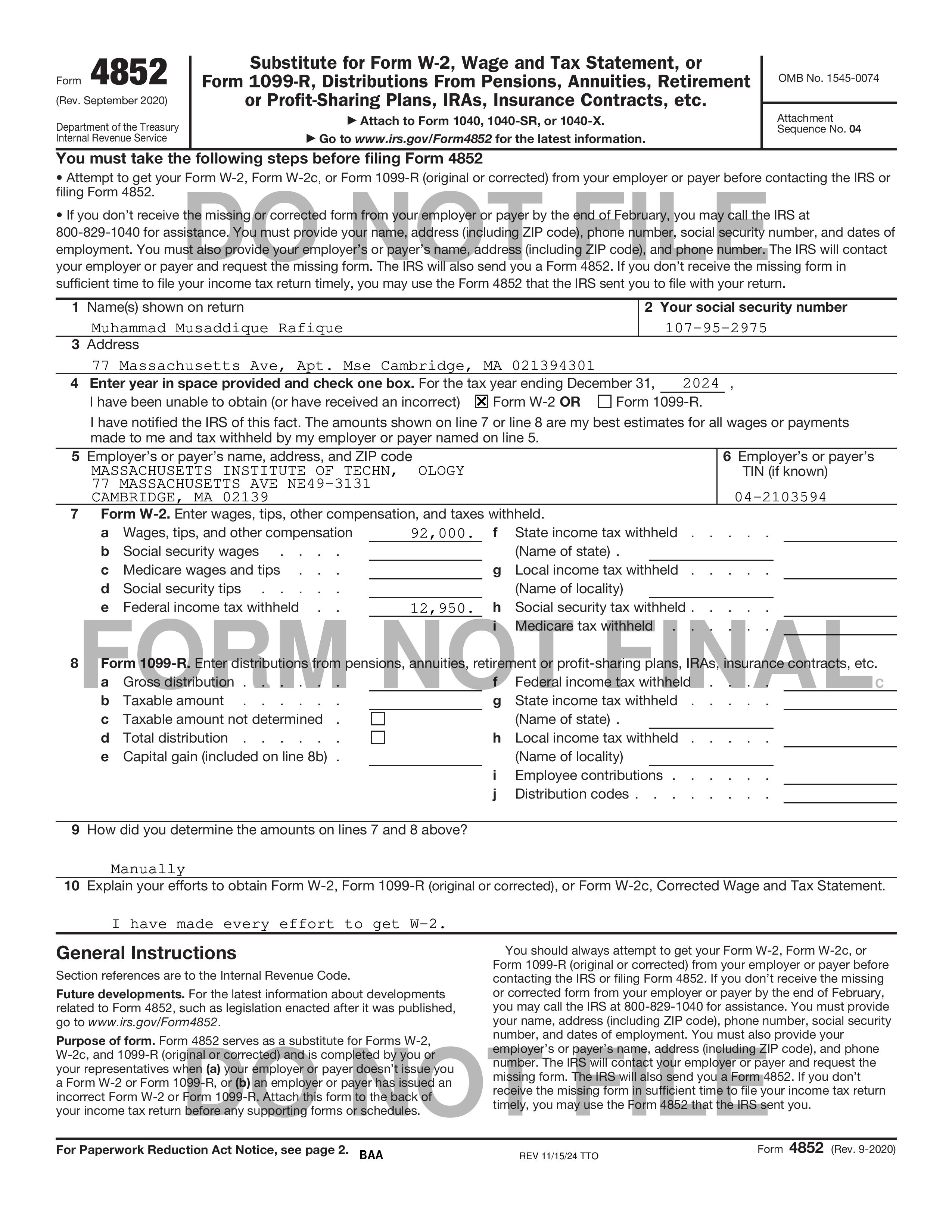 As per letter 3064C (not received), an african – american (black bastard) and representative 1004016807 (Ms. White), my 2020 amended return, despite being completed is not accepted today (only Line 16) and neither @MIT is issuing salary nor @IRS refund. They owe me two years, 10 months salary and they are not issuing it. Issue salary.