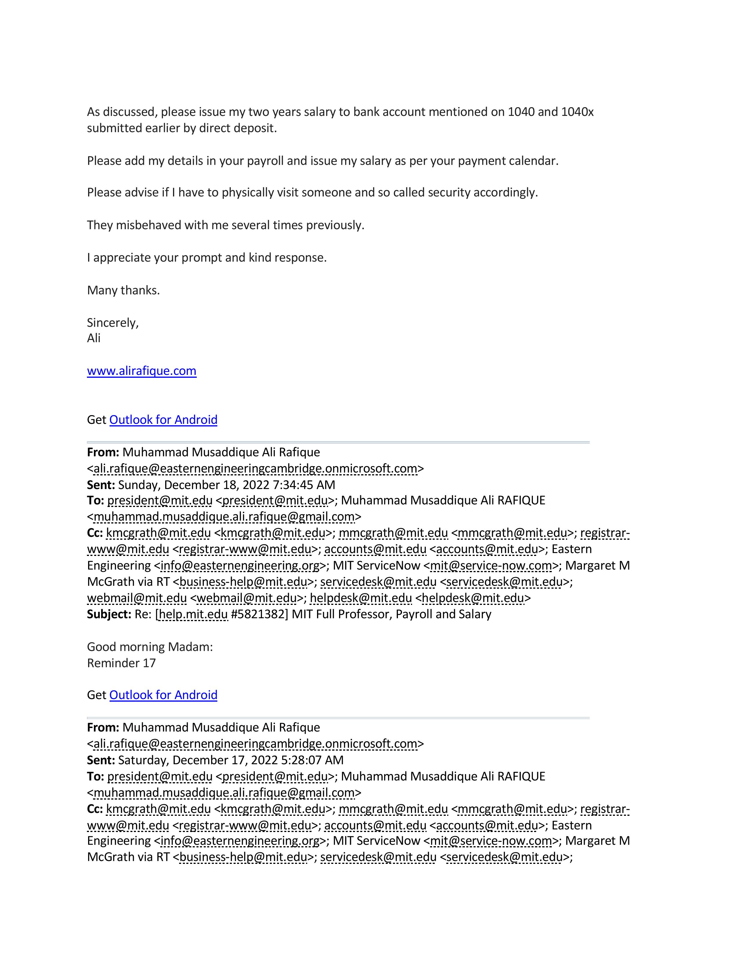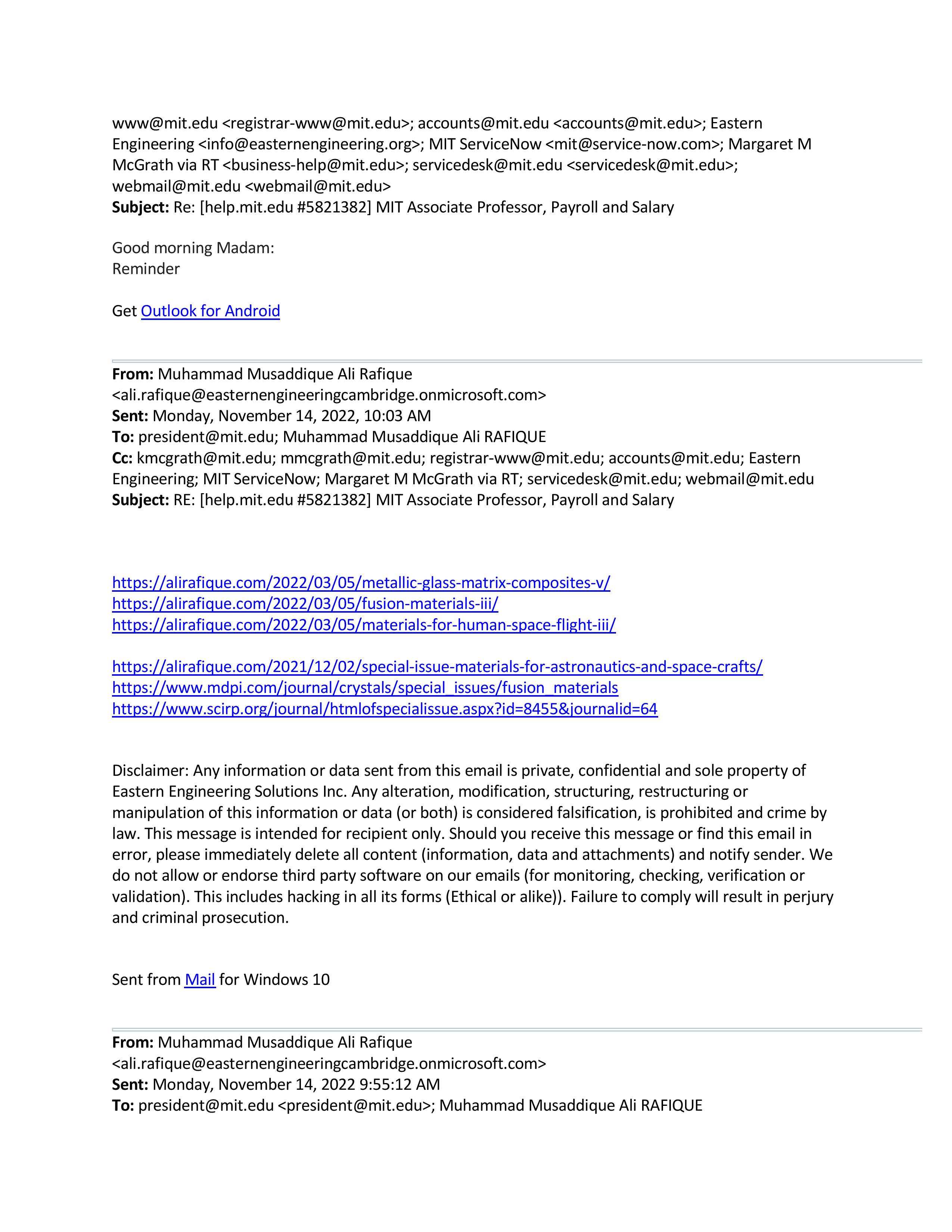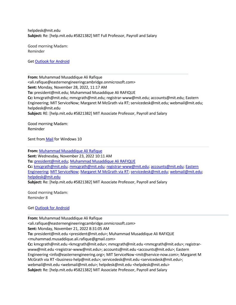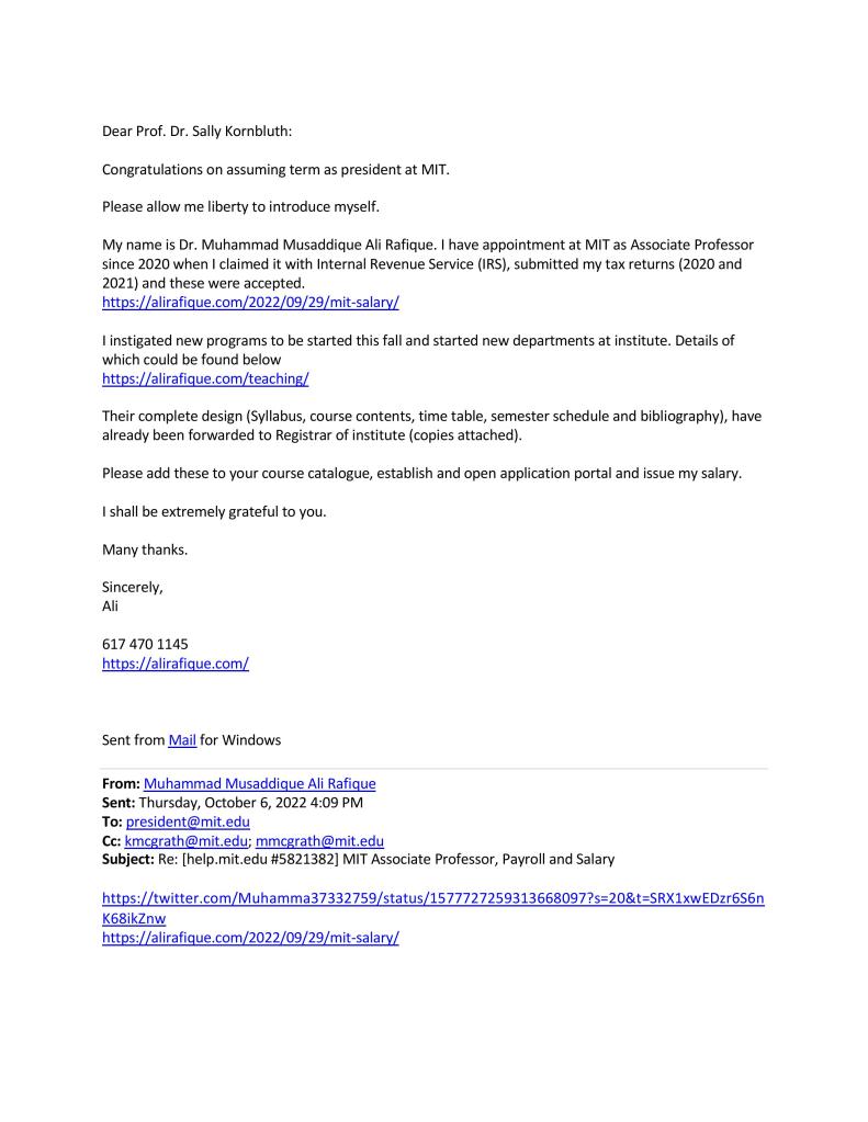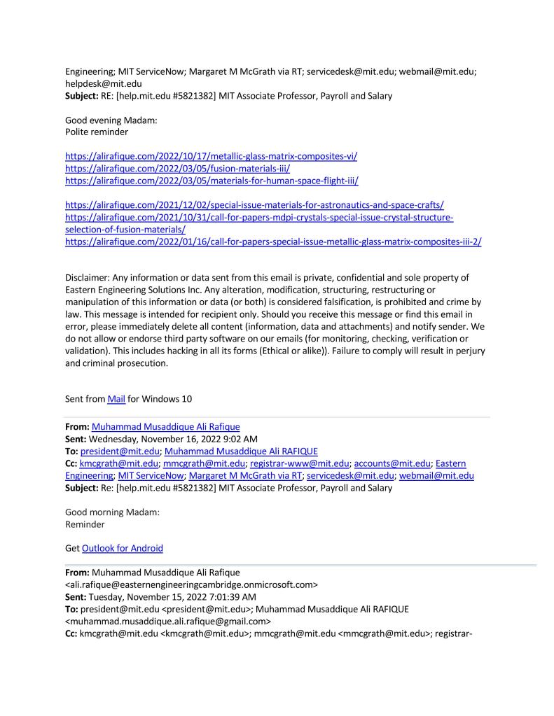 342 #reminders to so called @MIT, still waiting for #w2 and 02 #years, 10 #month #pending #salary. Sally Kornbluth #Terminated for #cheating, #playing, #perjury, #Wilfulnegligenceofduties, #Grossnegligence, #Insubordination, #Warcrimes, and #Espionage.