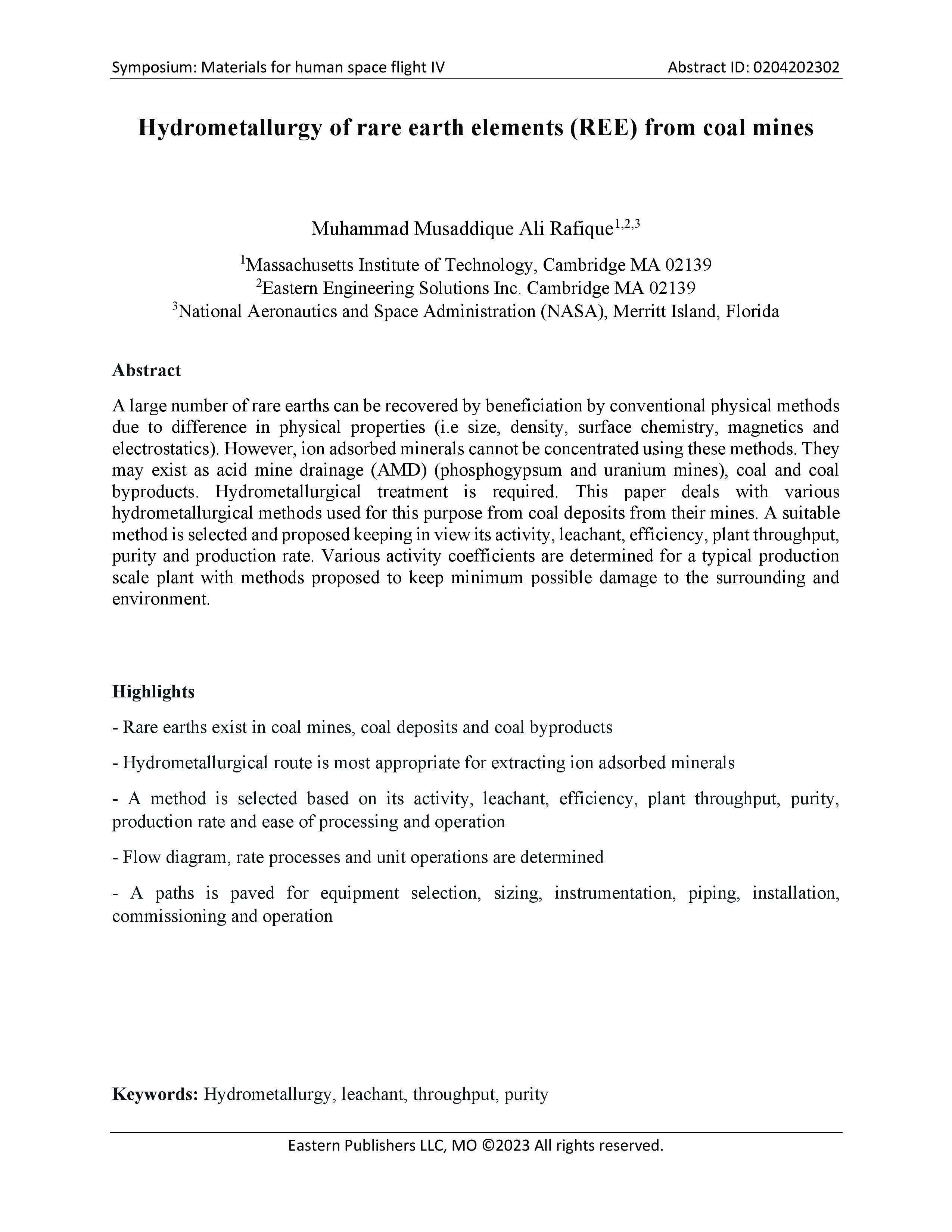 MATERIALS FOR HUMAN SPACE FLIGHT IV ABSTRACT ID: 0204202302