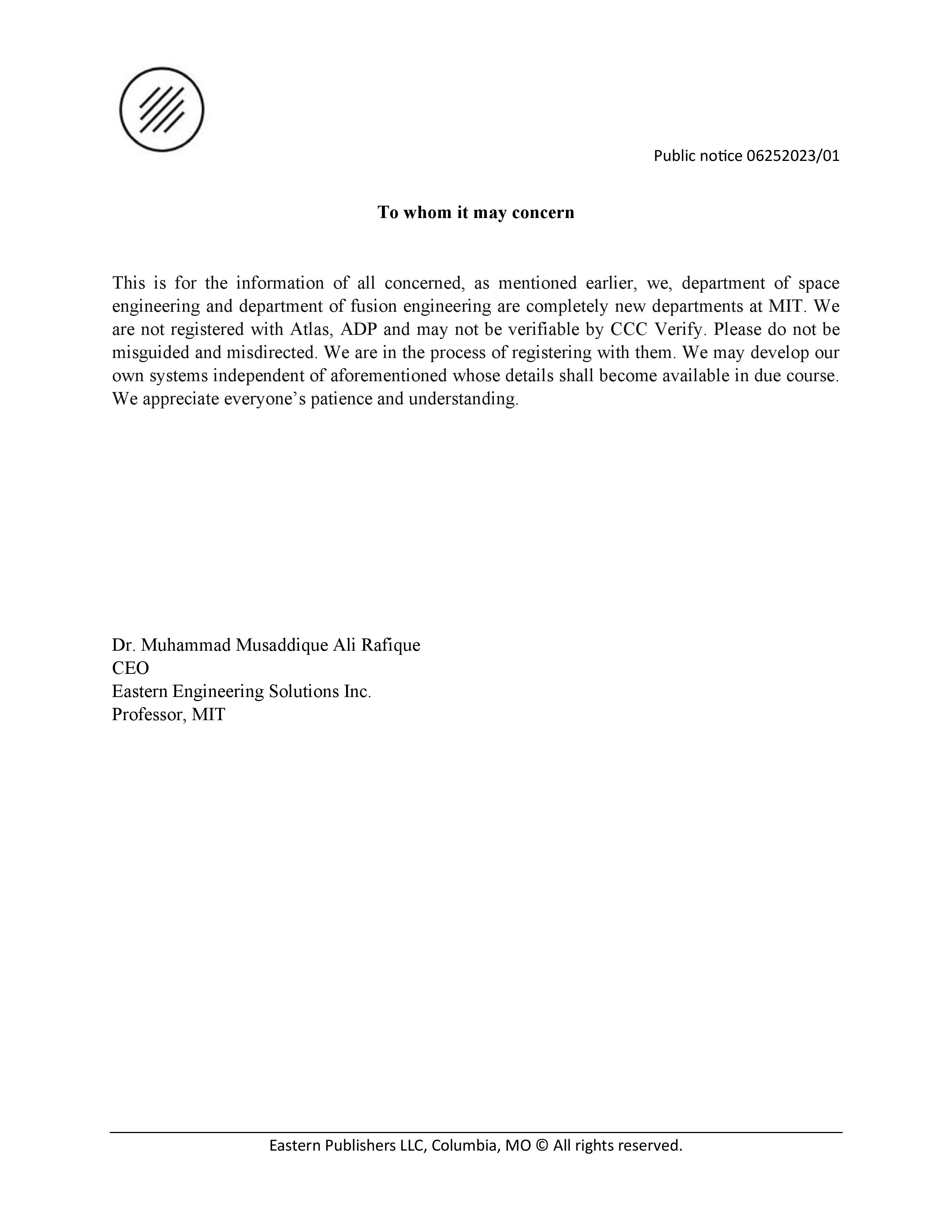 • Public Notice 11212025/01 November 27, 2025