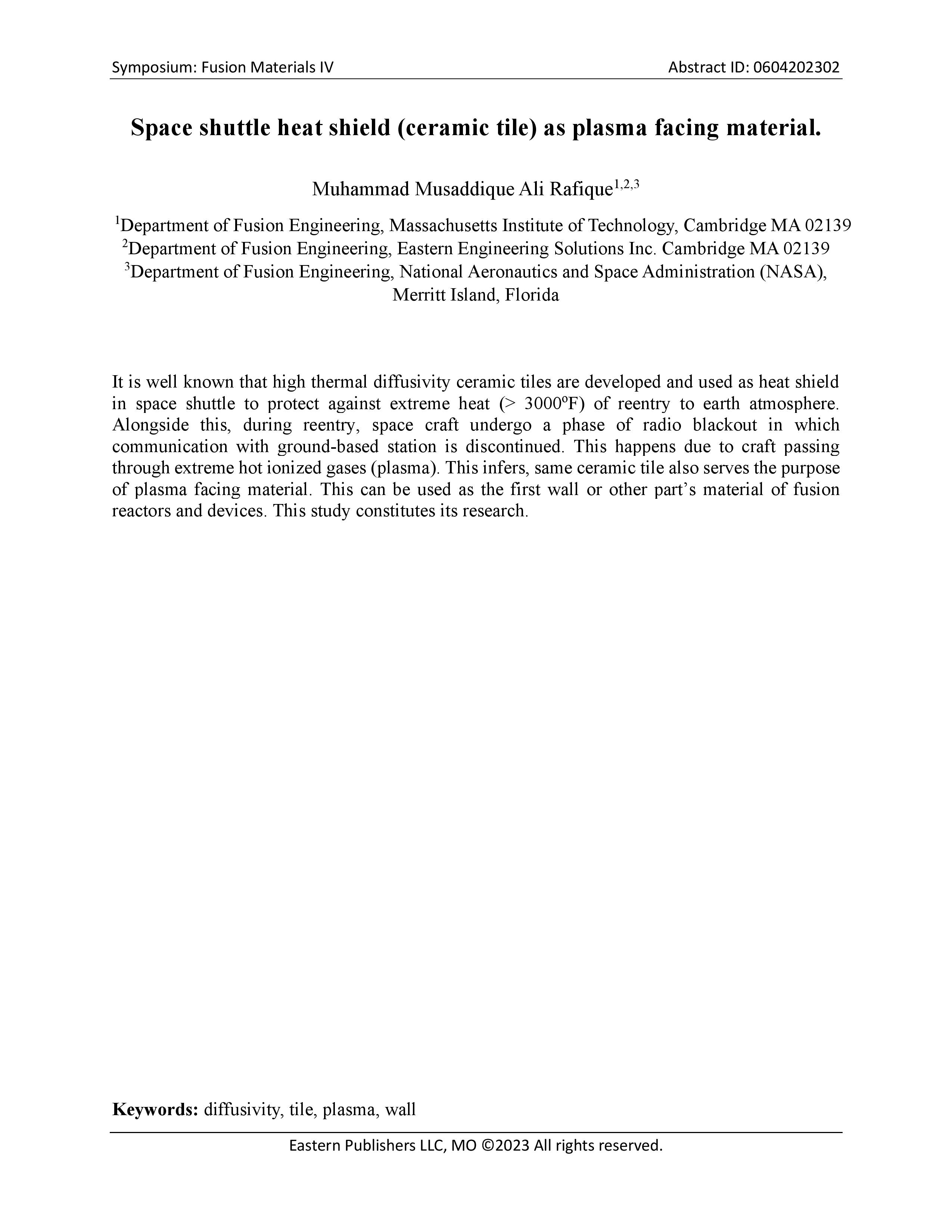 FUSION MATERIALS IV ABSTRACT ID: 0604202302