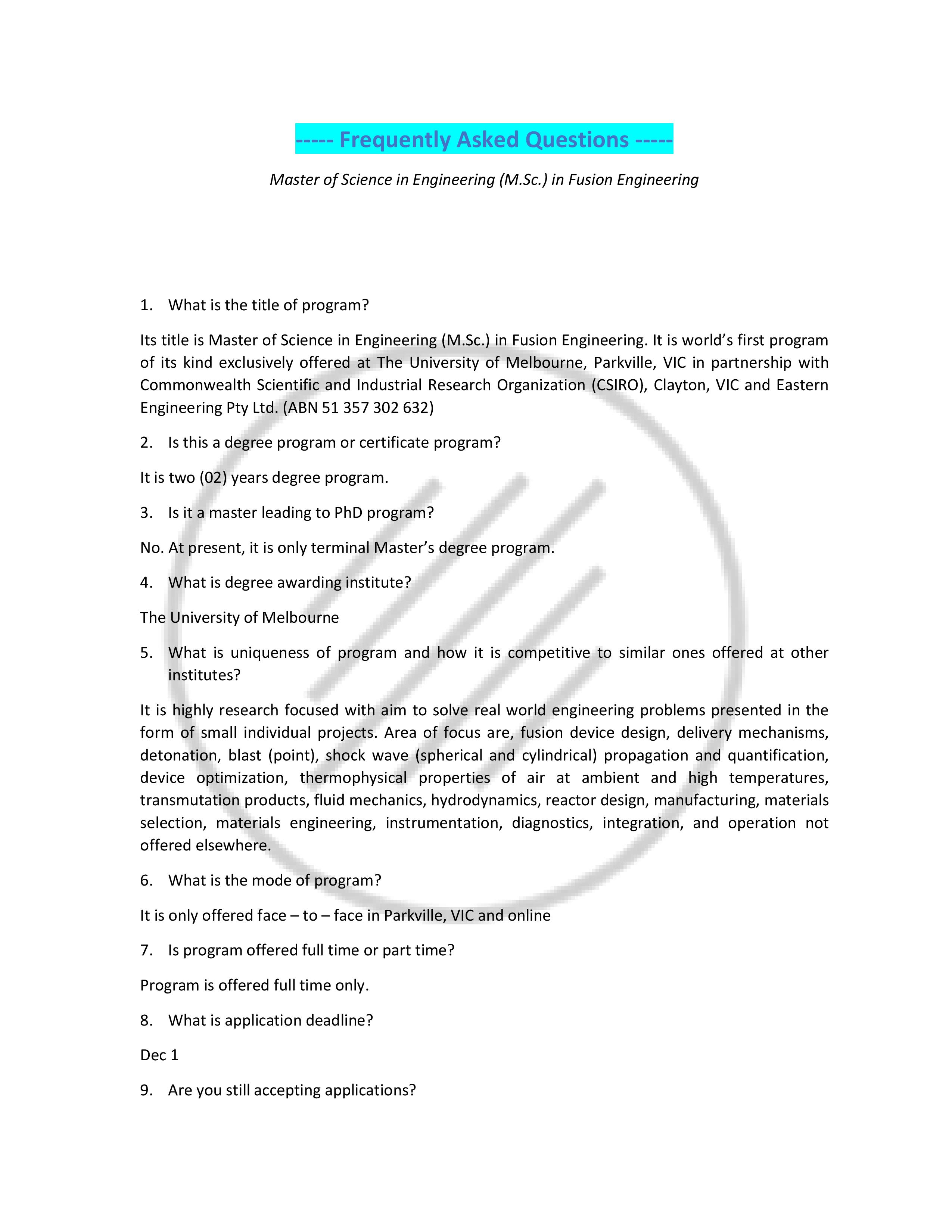 frequently asked questions (FAQs) – FUSION engineering – AU