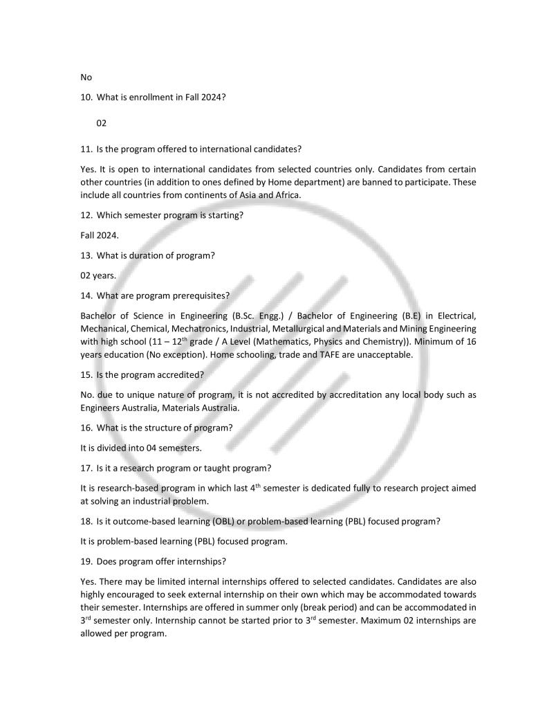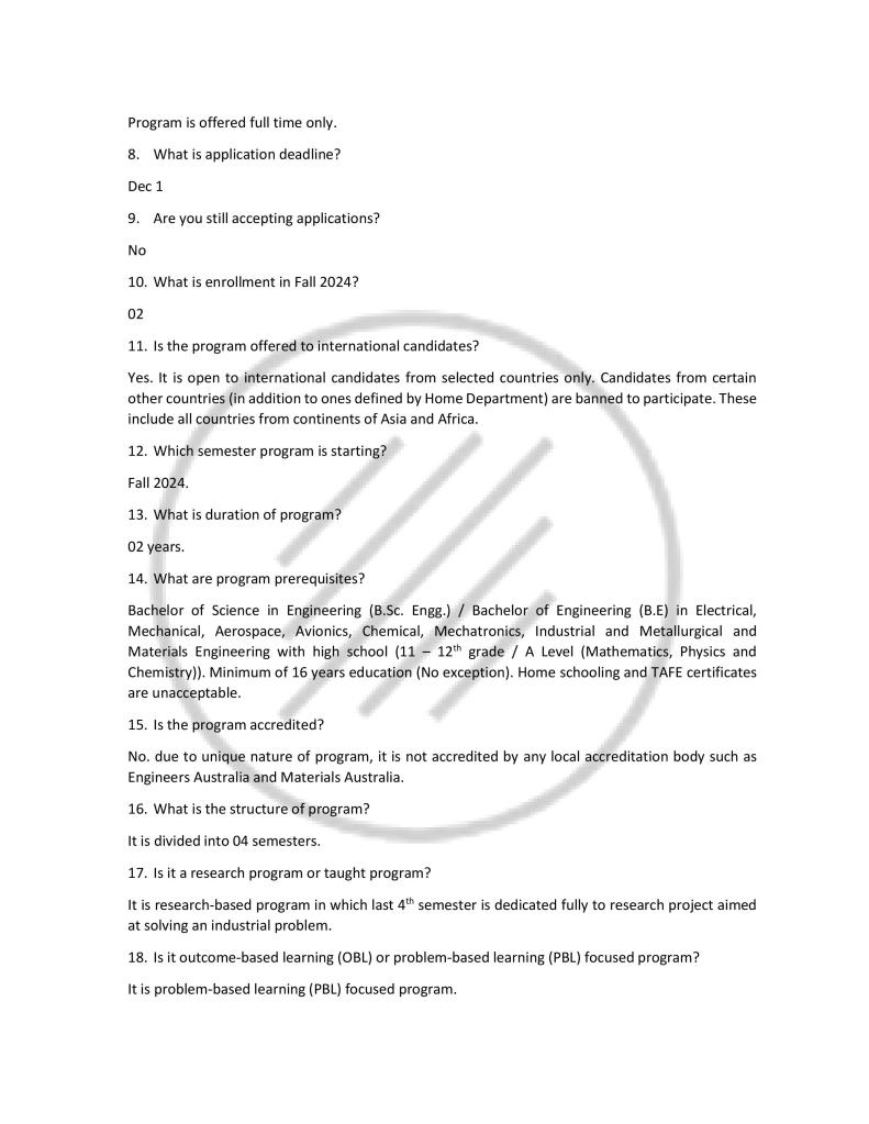 B.Sc. Engg. (Gold Medalist), University of Engineering and Technology (UET) Lahore, Pakistan – Joint European Master in Materials Science (EMMS), Technishe Universität Hamburg Harburg (TUHH), Deutschland, Universidade de Aveiro (UA), Portugal and Aalborg Universitet (AAU), Denamarka – Master (Nanoscience), Euskal Herriko Unibersitatea / Universidad del Pais Vasco (EHU/UPV), Espania – PhD (Aerospace Engineering), RMIT University, Melbourne, Australia