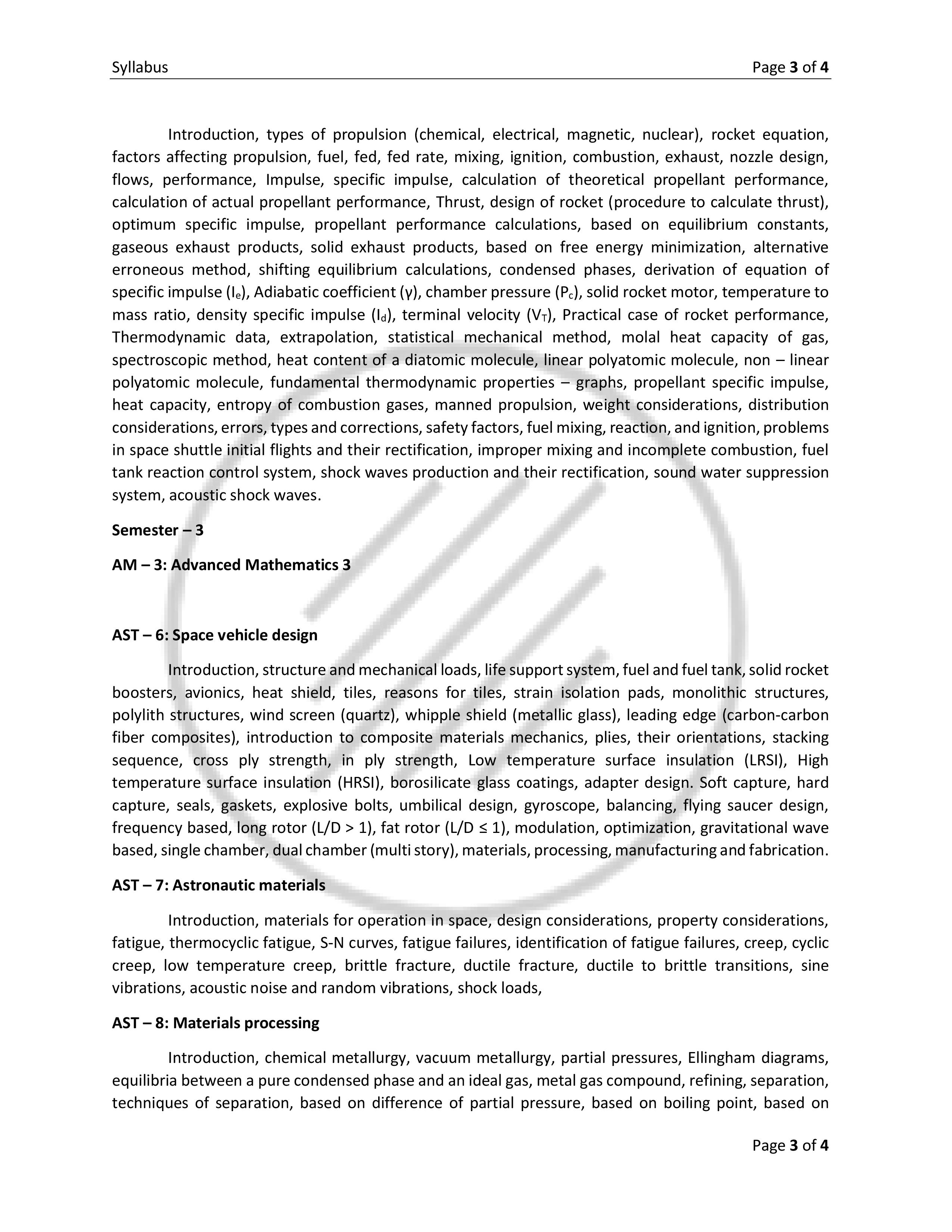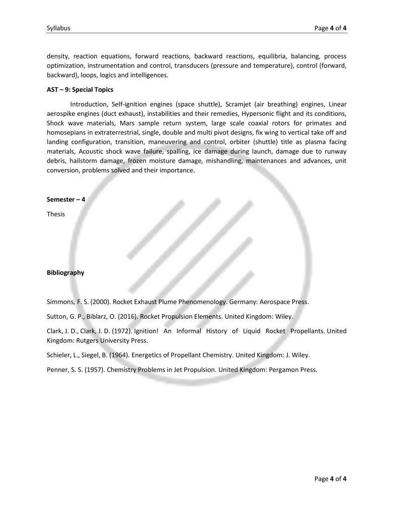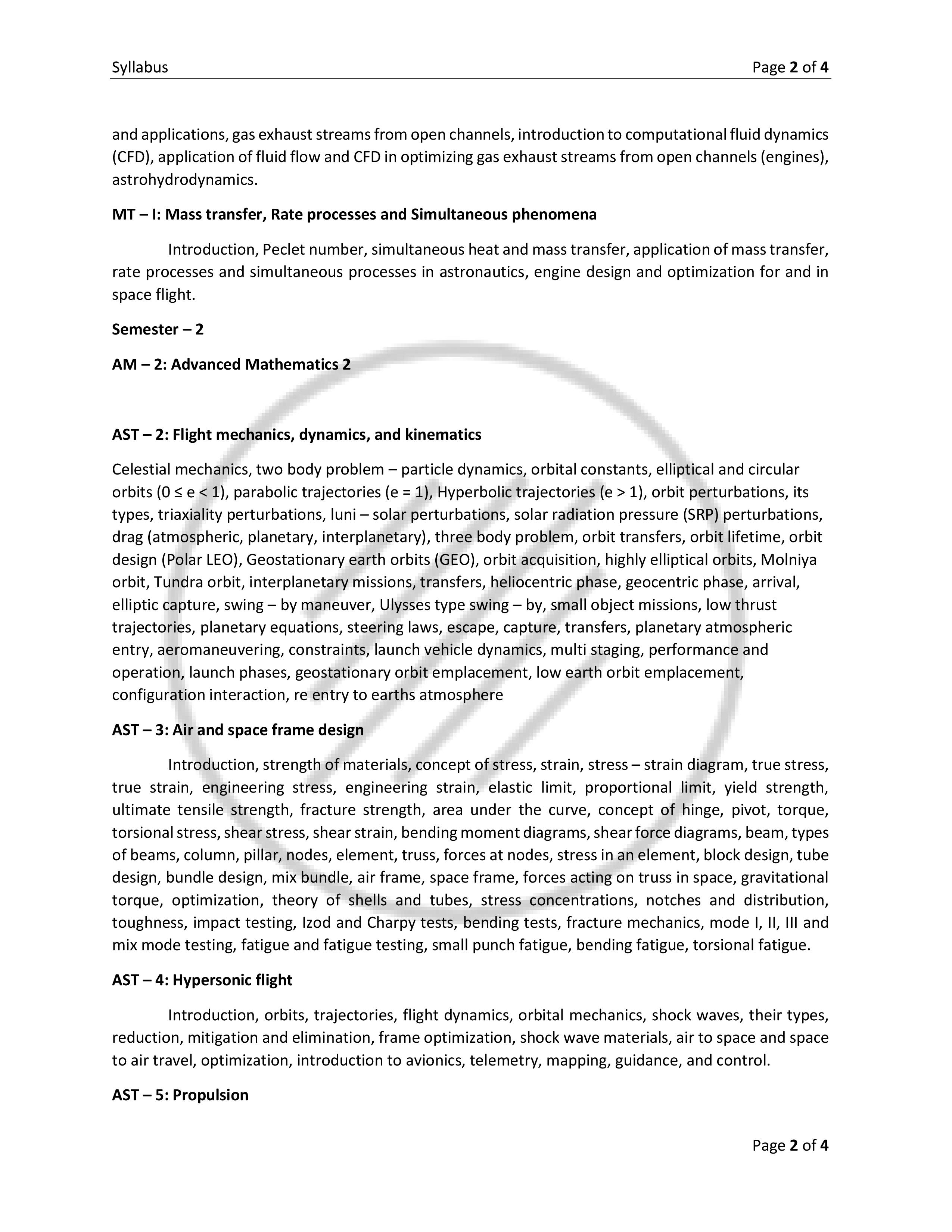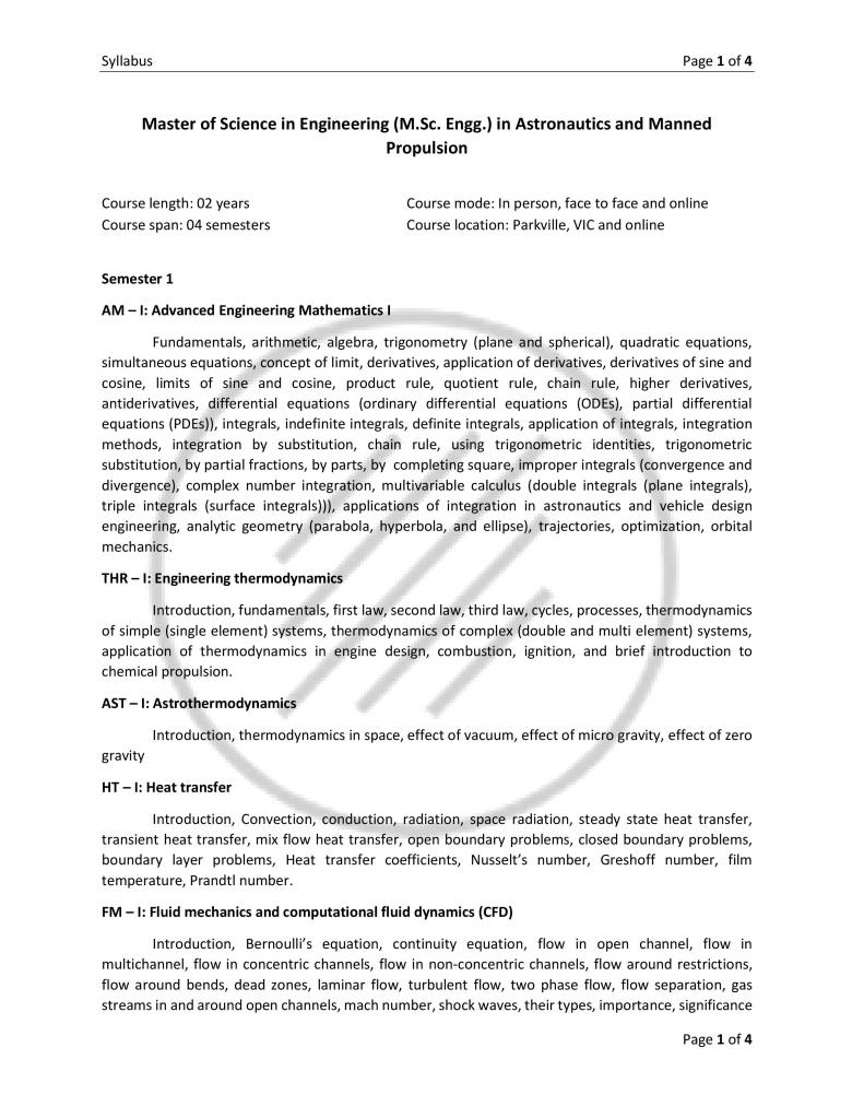 Syllabus – Master of Science in Engineering – Astronautics and Manned Propulsion – AU