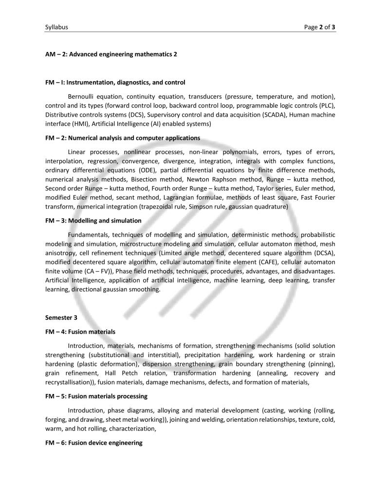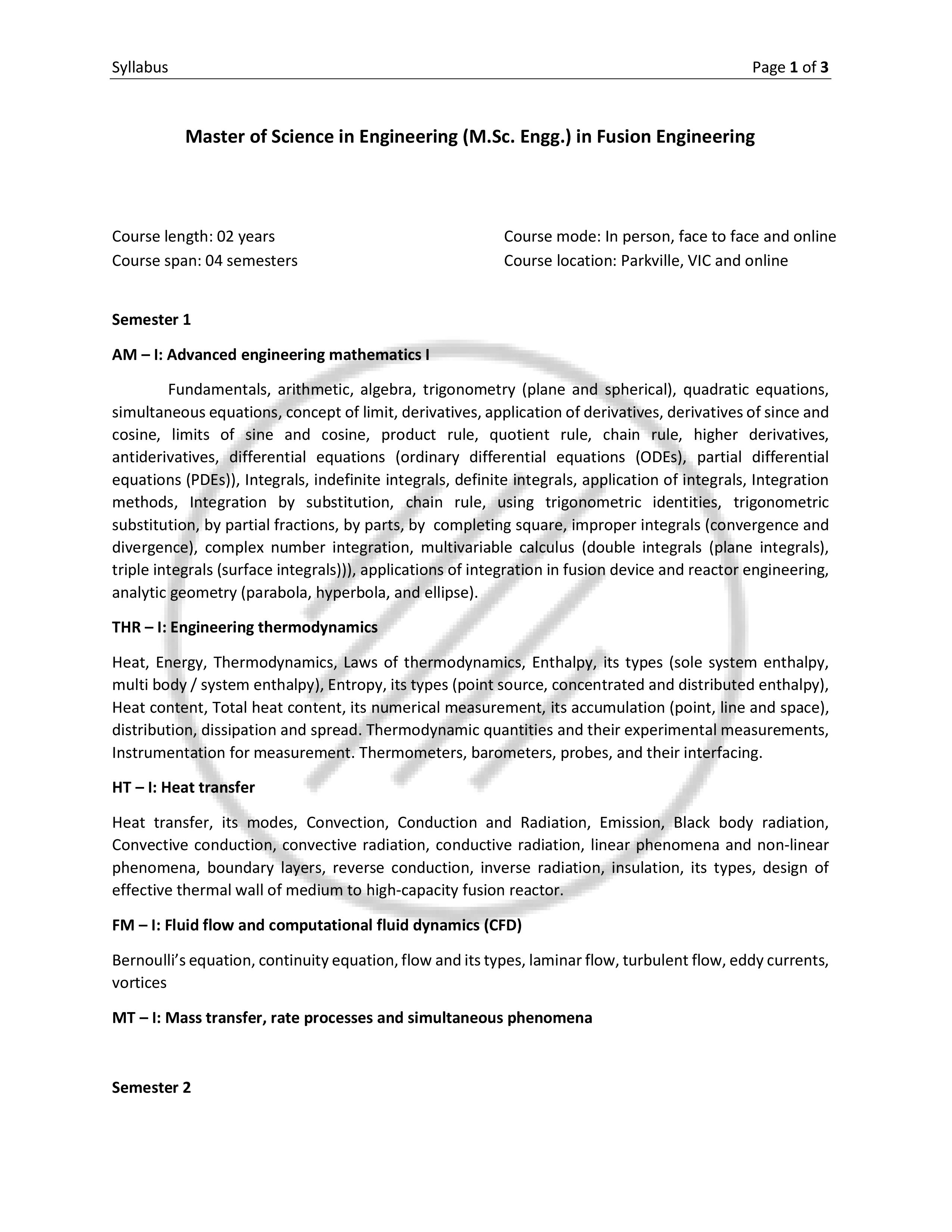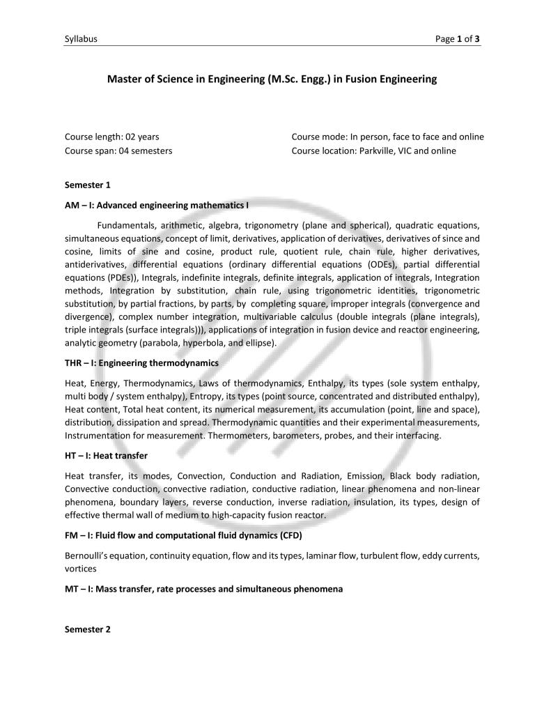 Syllabus – Master of Science in Engineering – Fusion Engineering – AU