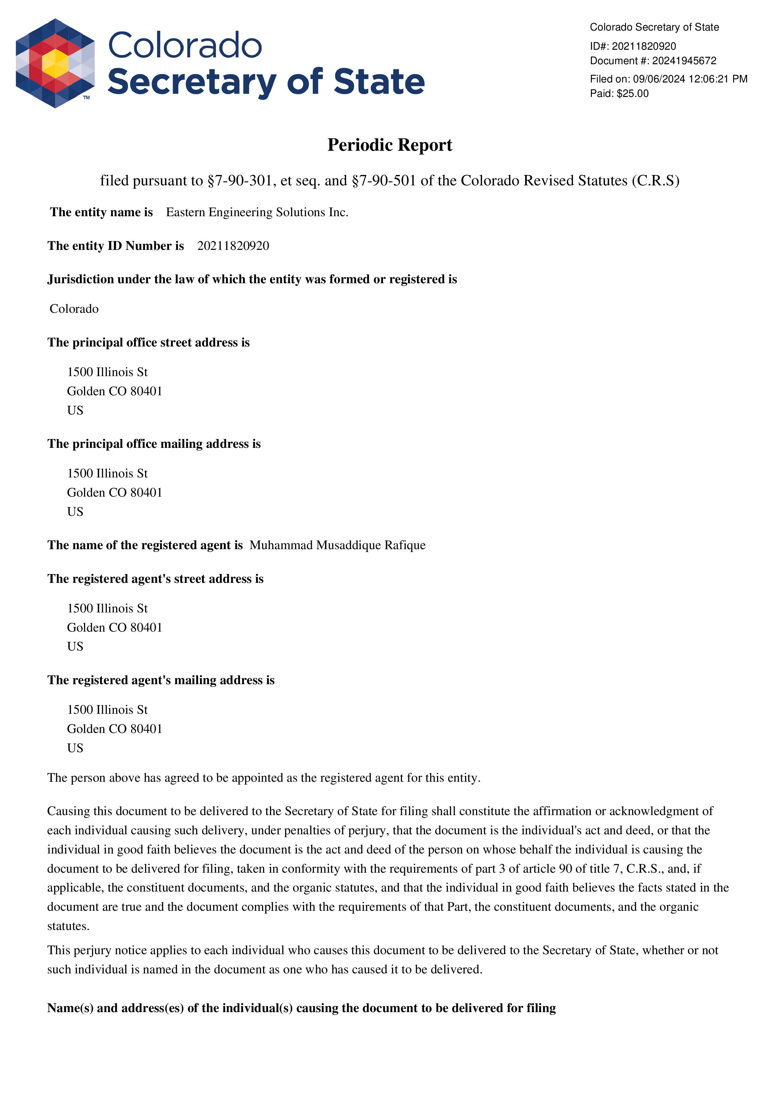 • Eastern Engineering Solutions LLC – Ames – Iowa December 6, 2025