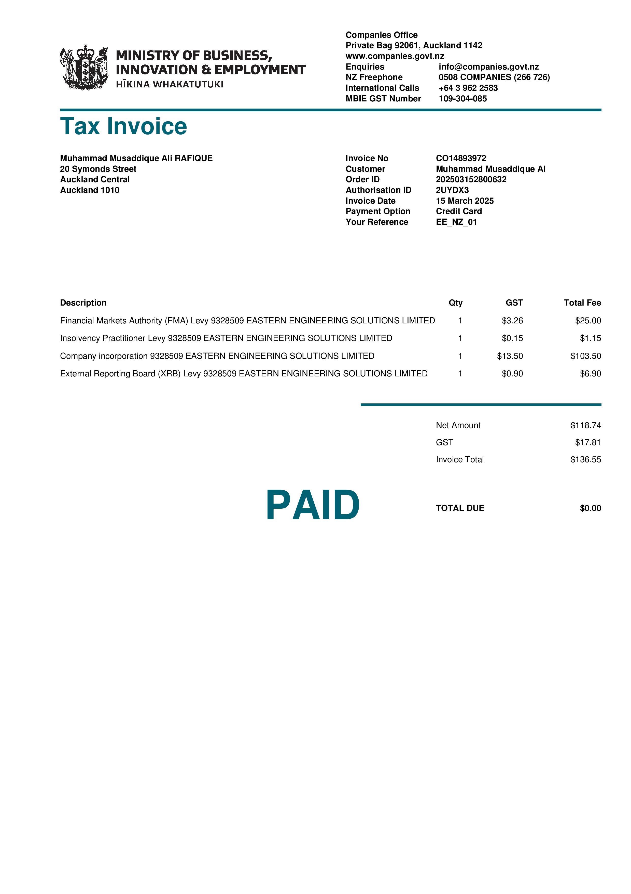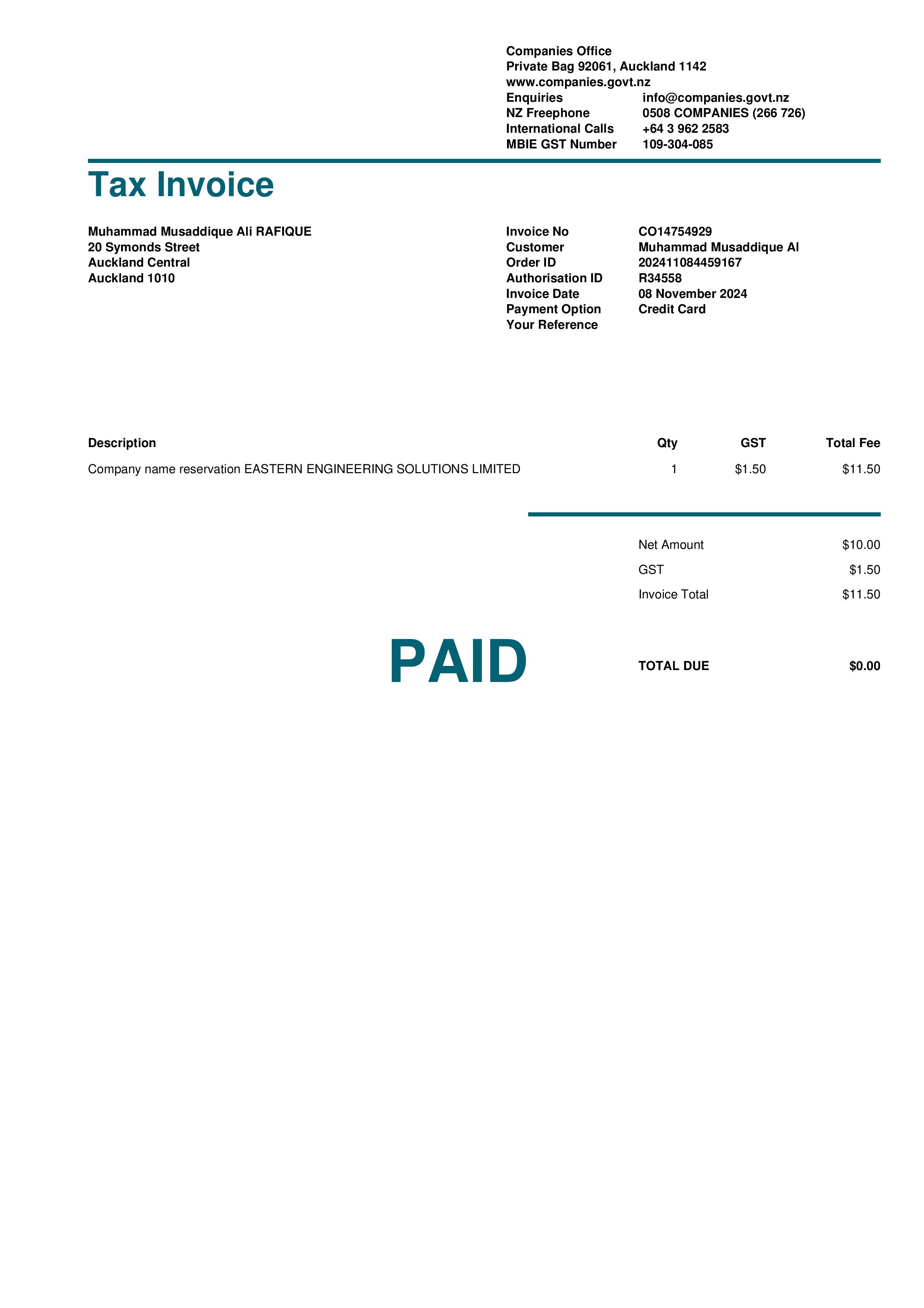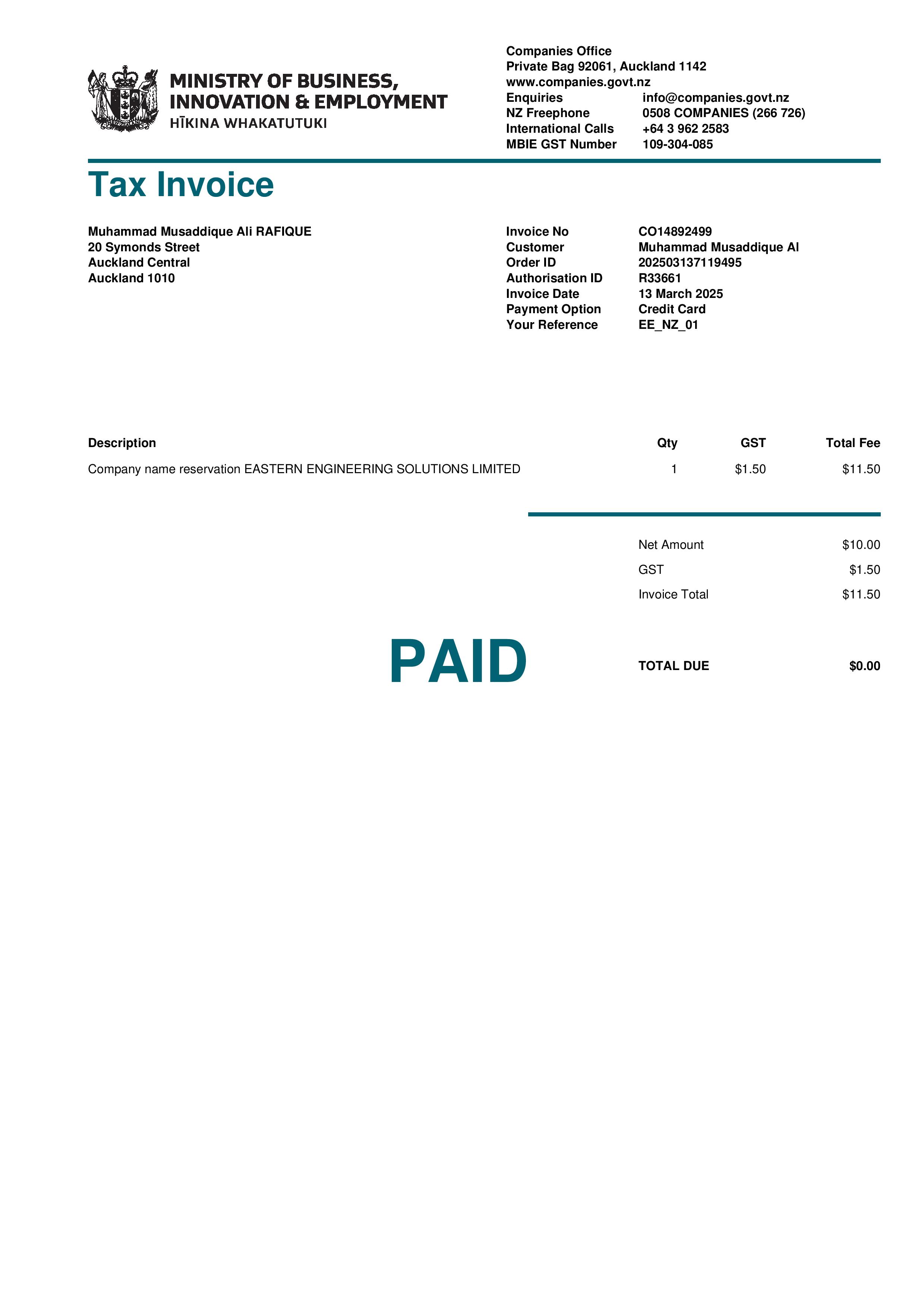 EASTERN ENGINEERING SOLUTIONS LIMITED