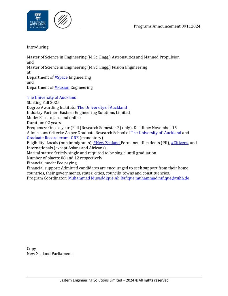 B.Sc. Engg. (Gold Medalist), University of Engineering and Technology (UET) Lahore, Pakistan – Joint European Master in Materials Science (EMMS), Technishe Universität Hamburg Harburg (TUHH), Deutschland, Universidade de Aveiro (UA), Portugal and Aalborg Universitet (AAU), Denamarka – Master (Nanoscience), Euskal Herriko Unibersitatea / Universidad del Pais Vasco (EHU/UPV), Espania – PhD (Aerospace Engineering), RMIT University, Melbourne, Australia