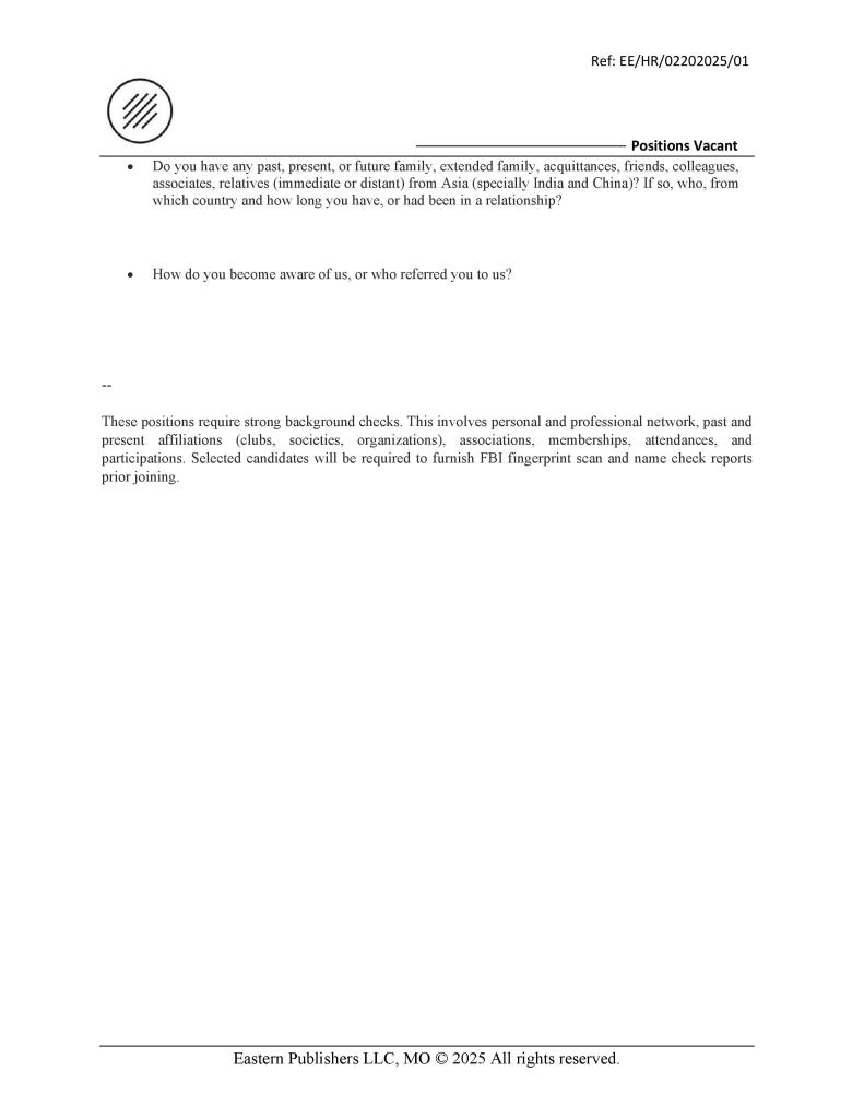 • Eastern Engineering Solutions LLC – Ames – Iowa December 6, 2025