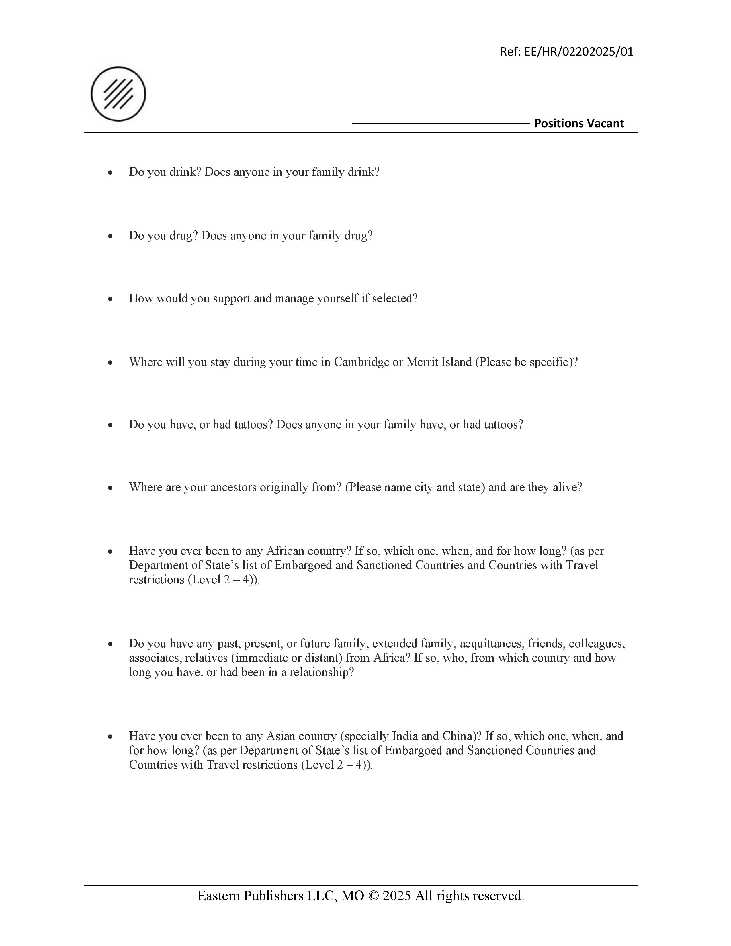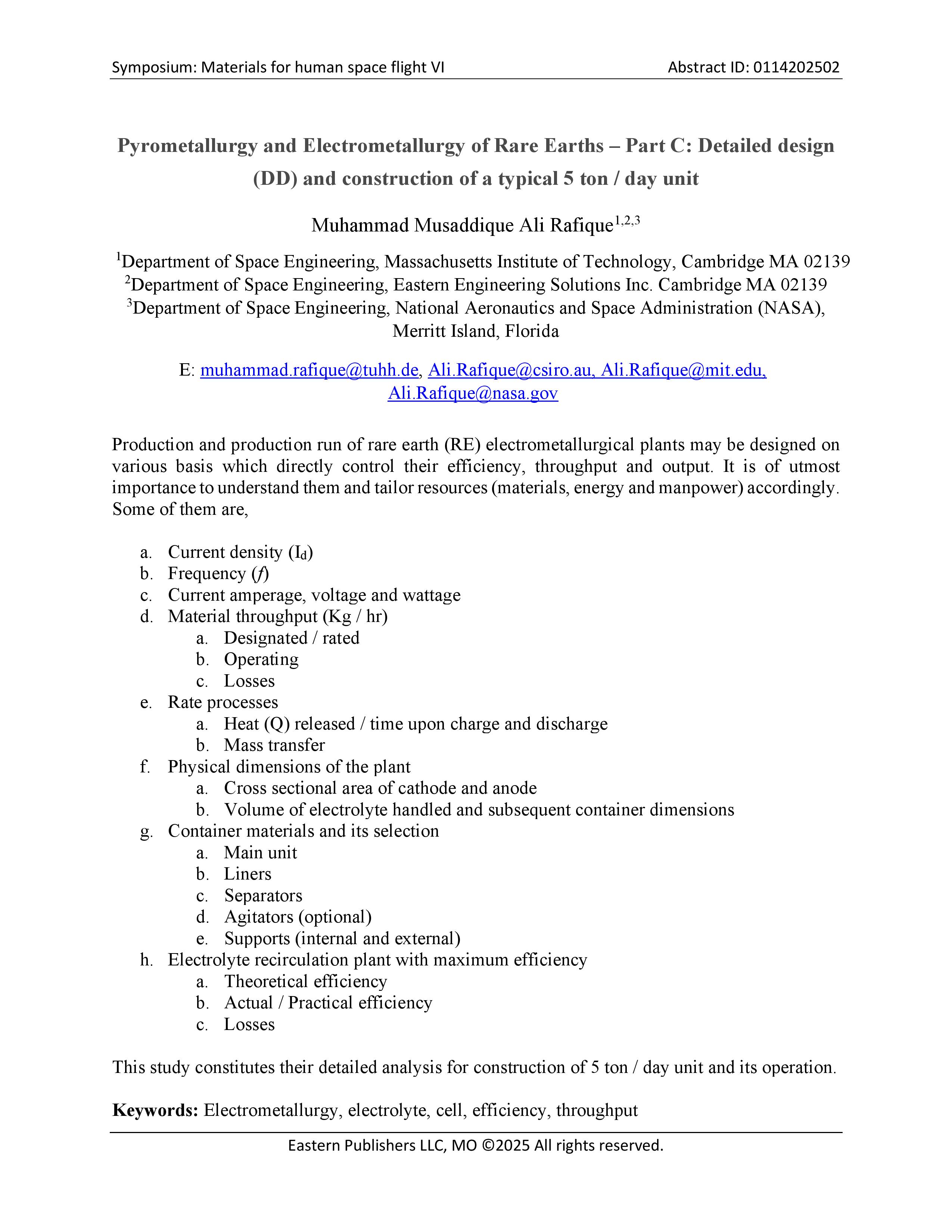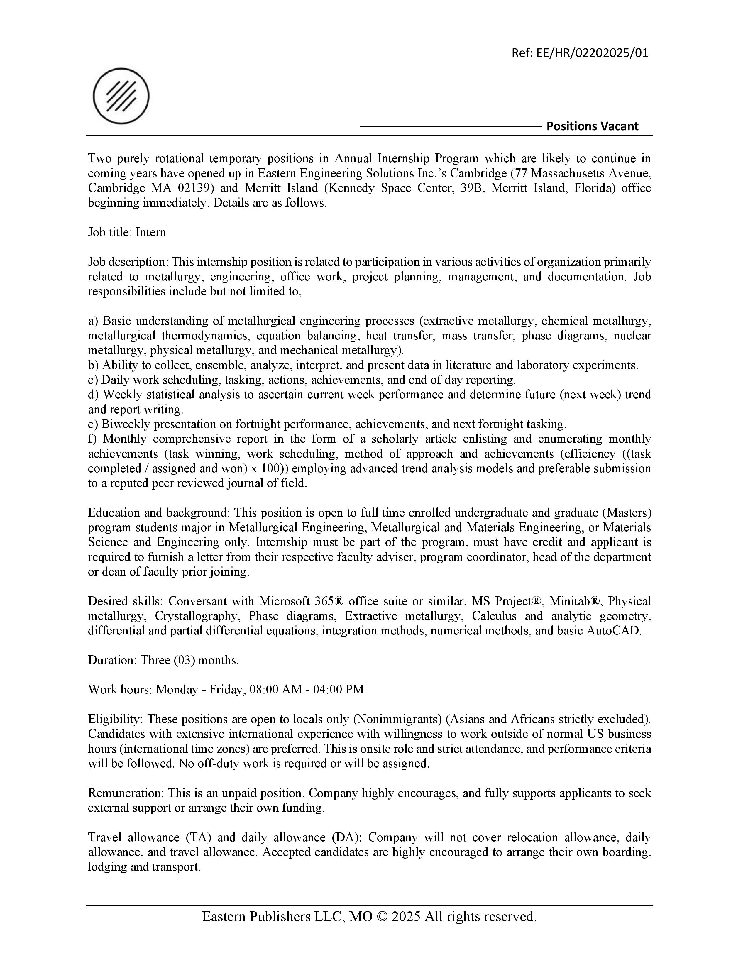 • Eastern Engineering Solutions LLC – Ames – Iowa December 6, 2025
