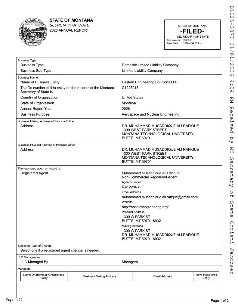 2026 ANNUAL REPORT – NO CHANGES EASTERN ENGINEERING SOLUTIONS LLC