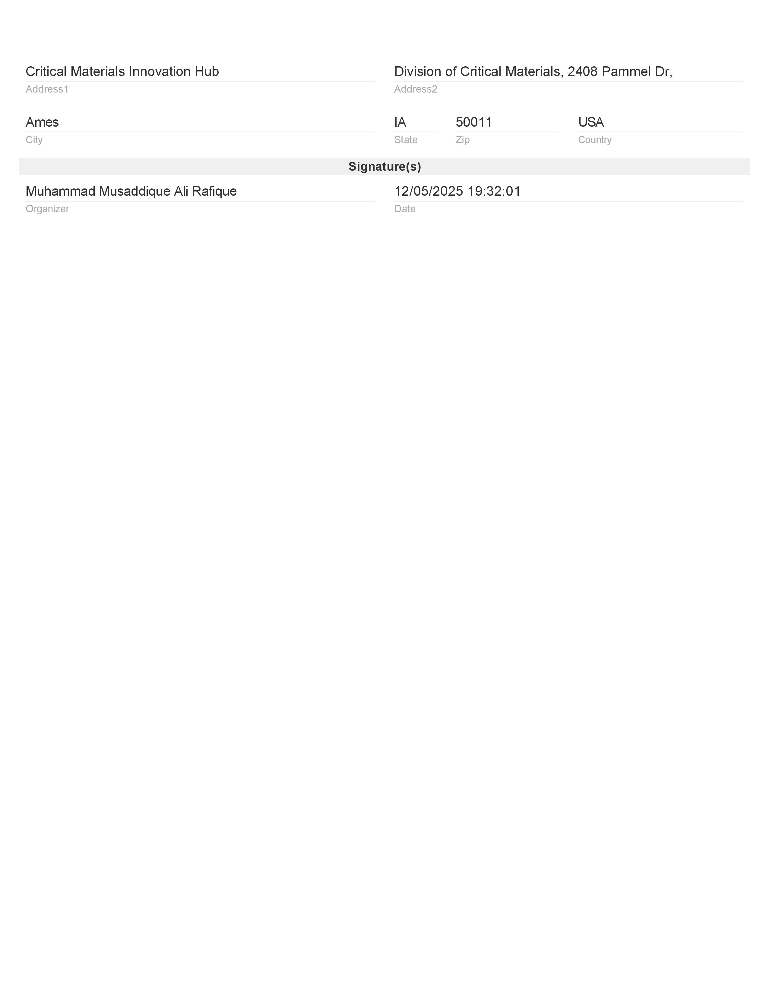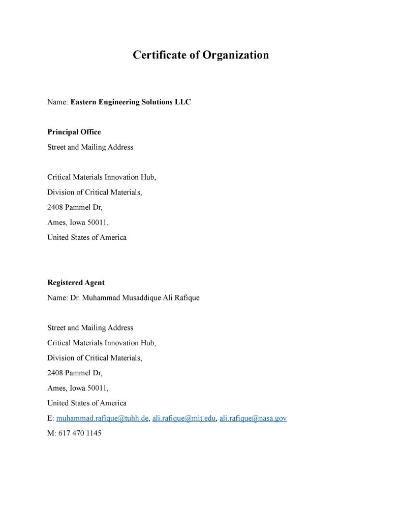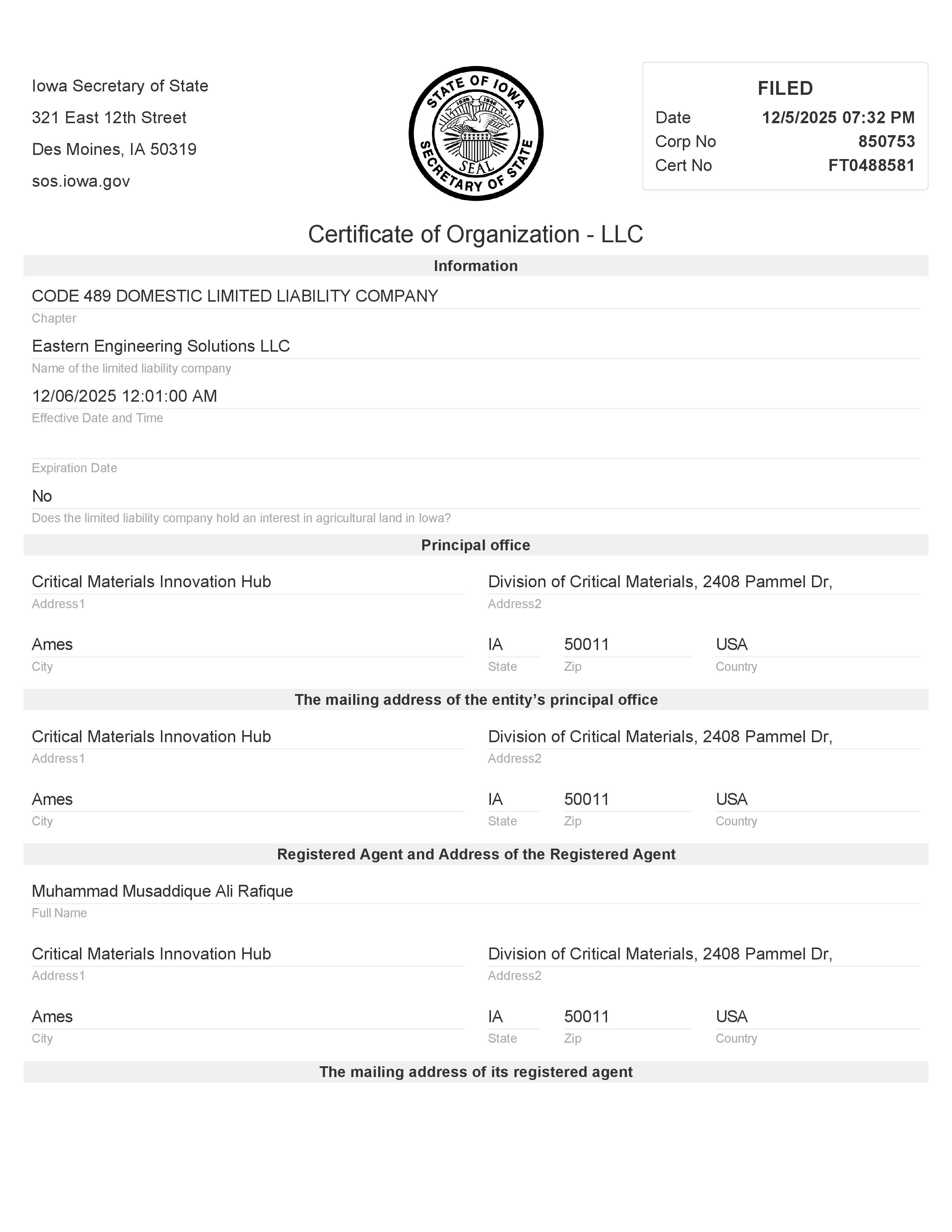 • Eastern Engineering Solutions LLC – Ames – Iowa December 6, 2025