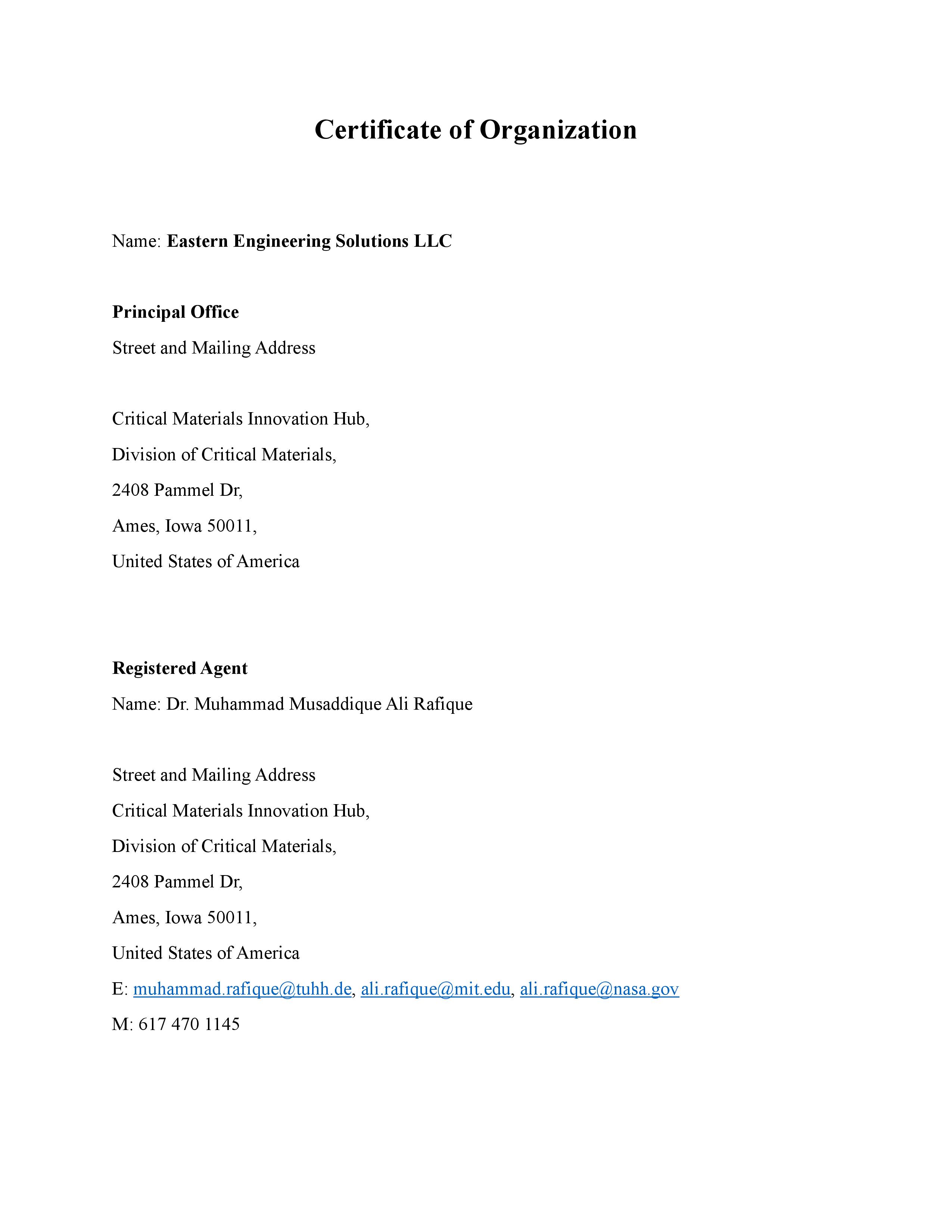 Eastern Engineering Solutions LLC – Ames – Iowa