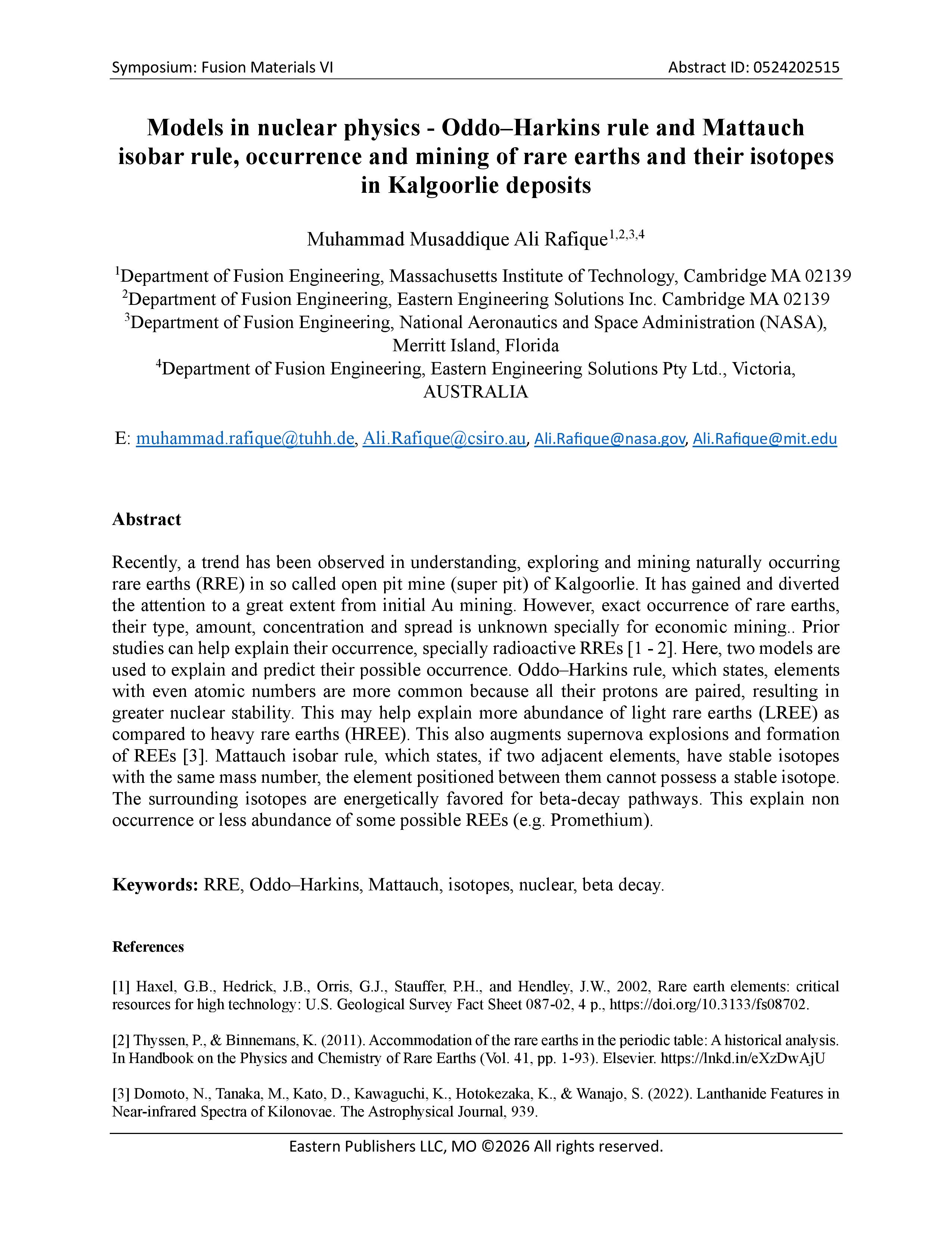 • FUSION MATERIALS VI ABSTRACT ID: 0524202515 March 2, 2026
