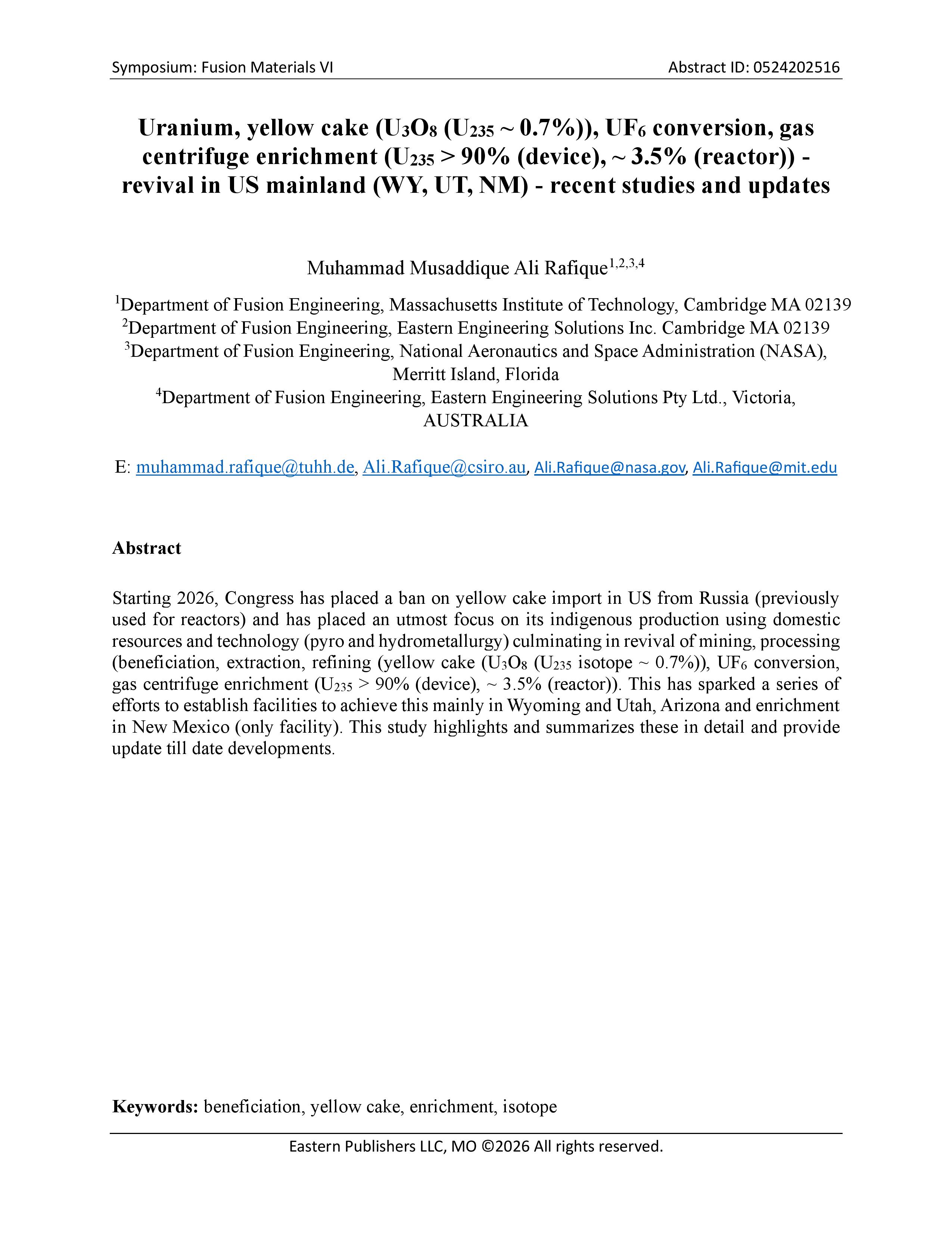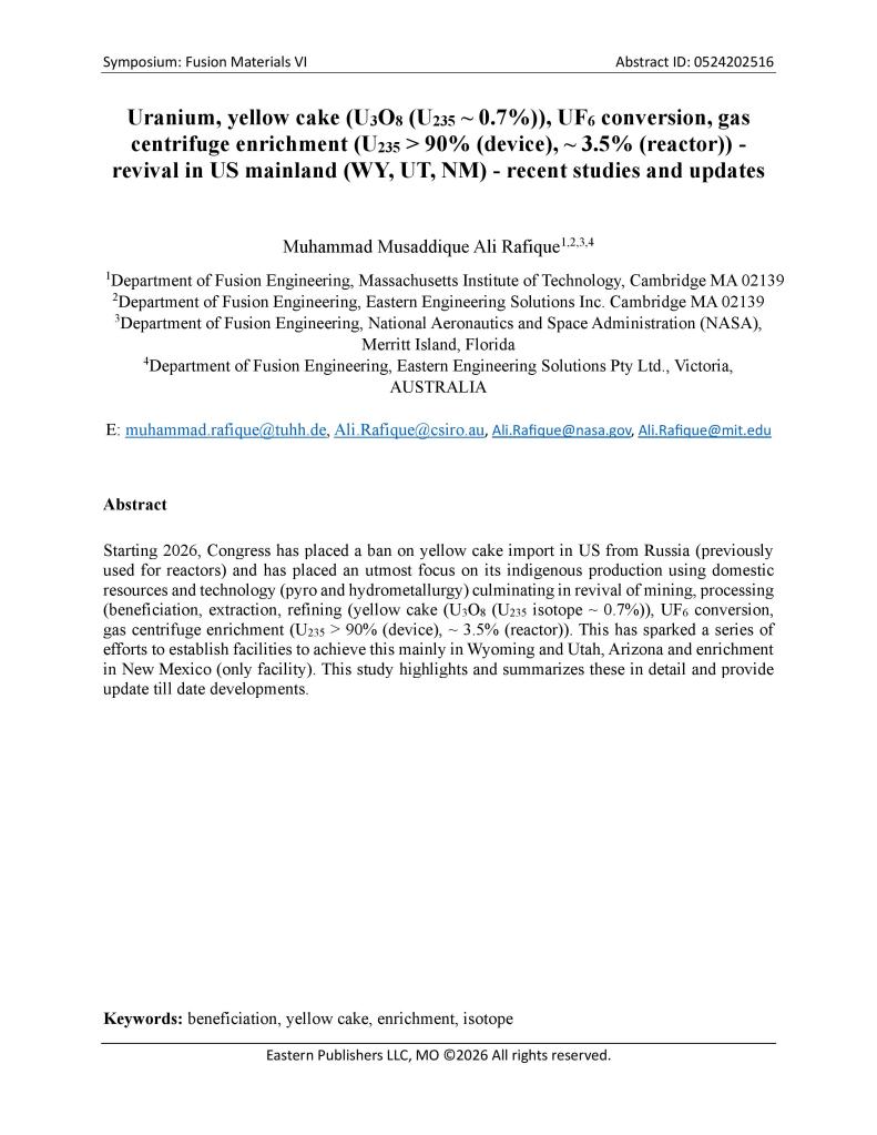 • FUSION MATERIALS VI ABSTRACT ID: 0524202515 March 2, 2026