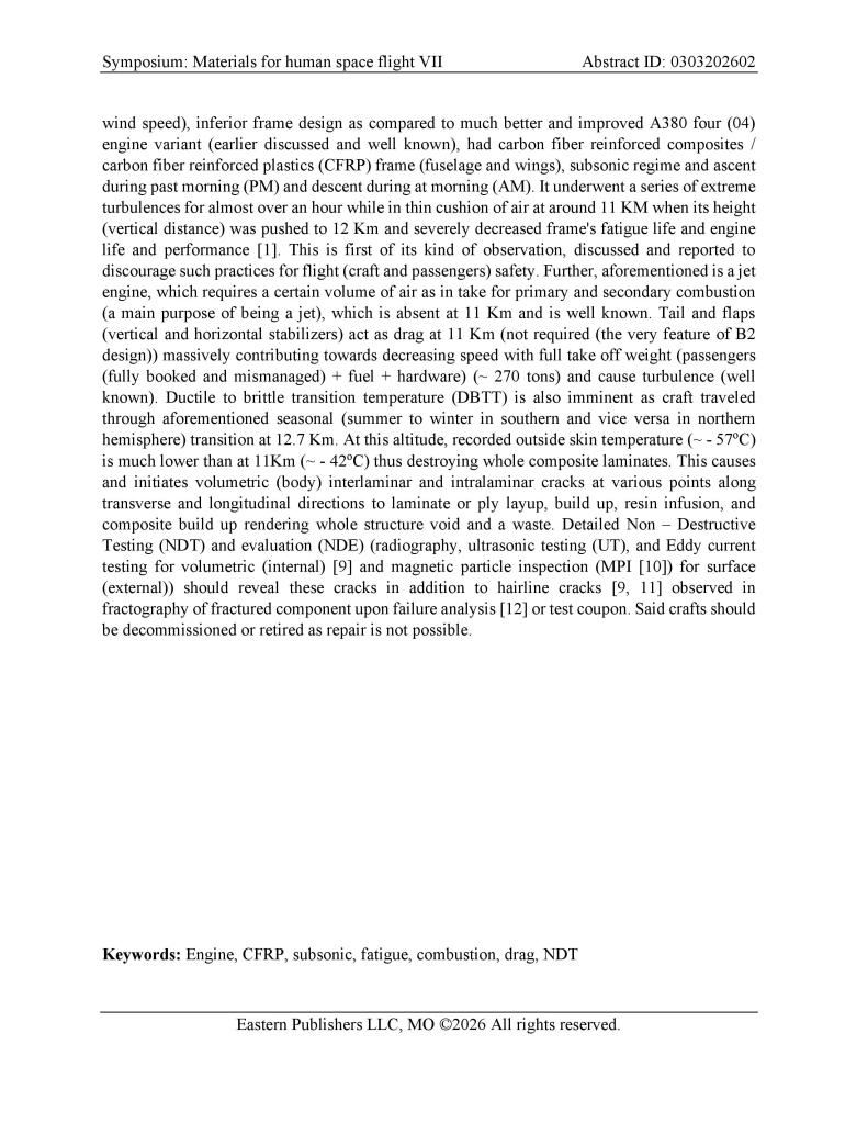 • MATERIALS FOR HUMAN SPACE FLIGHT VII ABSTRACT ID: 0303202602 March 9, 2026
