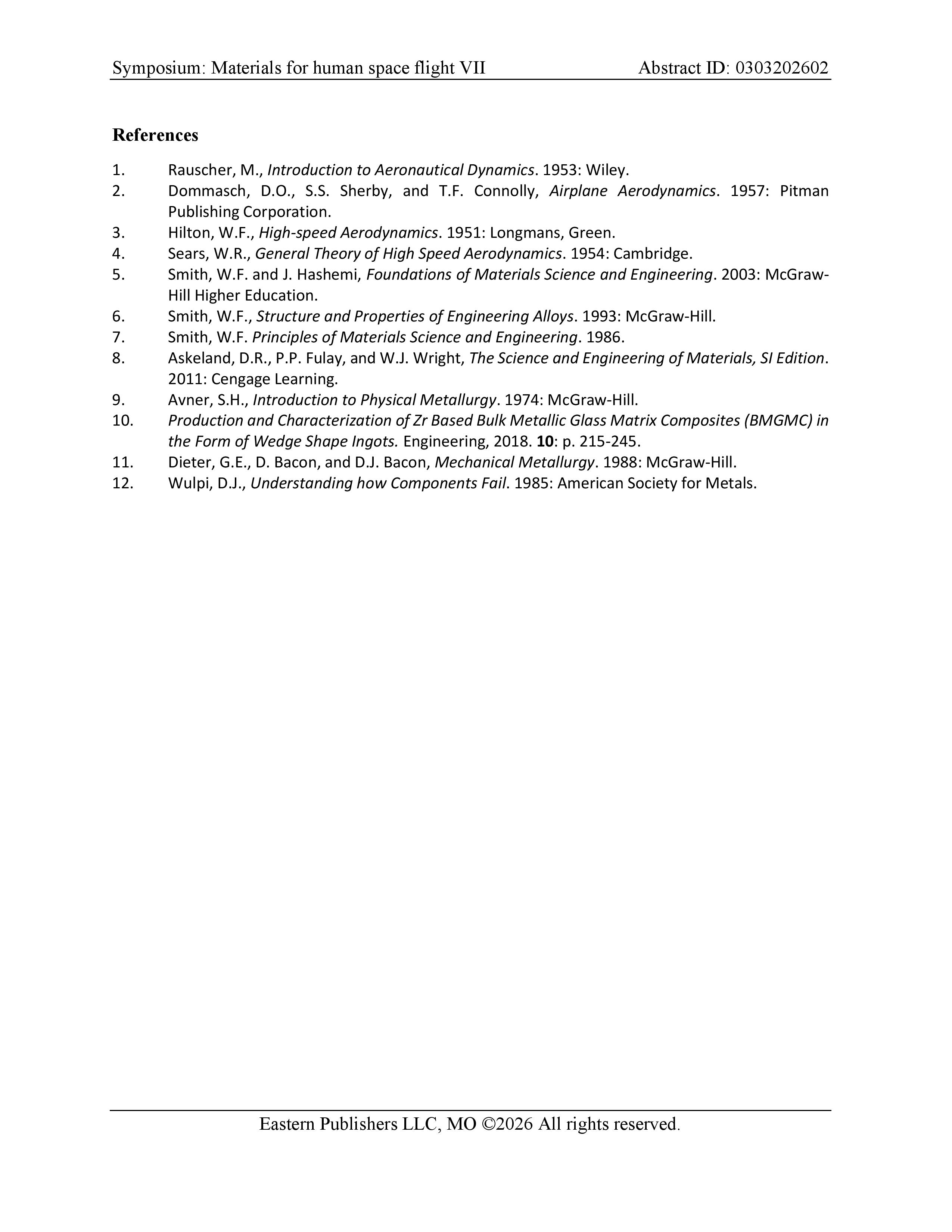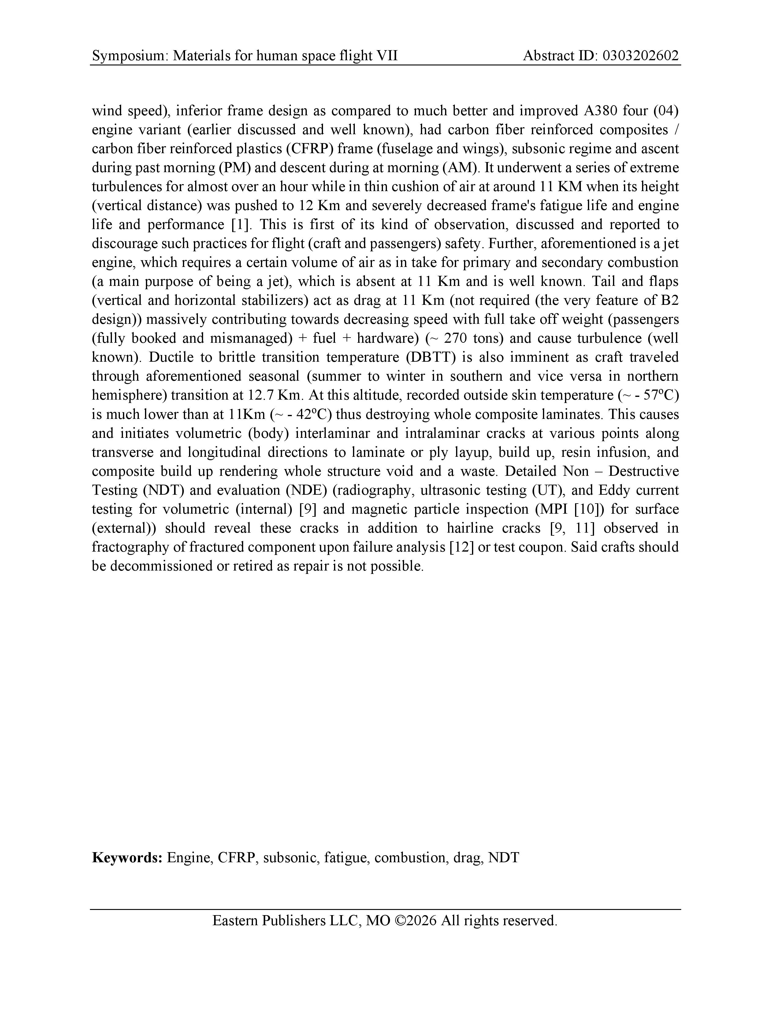 • MATERIALS FOR HUMAN SPACE FLIGHT VII ABSTRACT ID: 0303202602 March 9, 2026