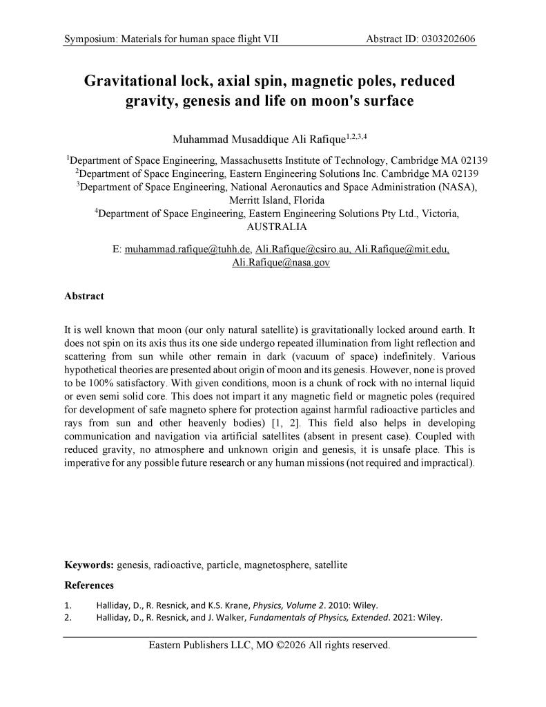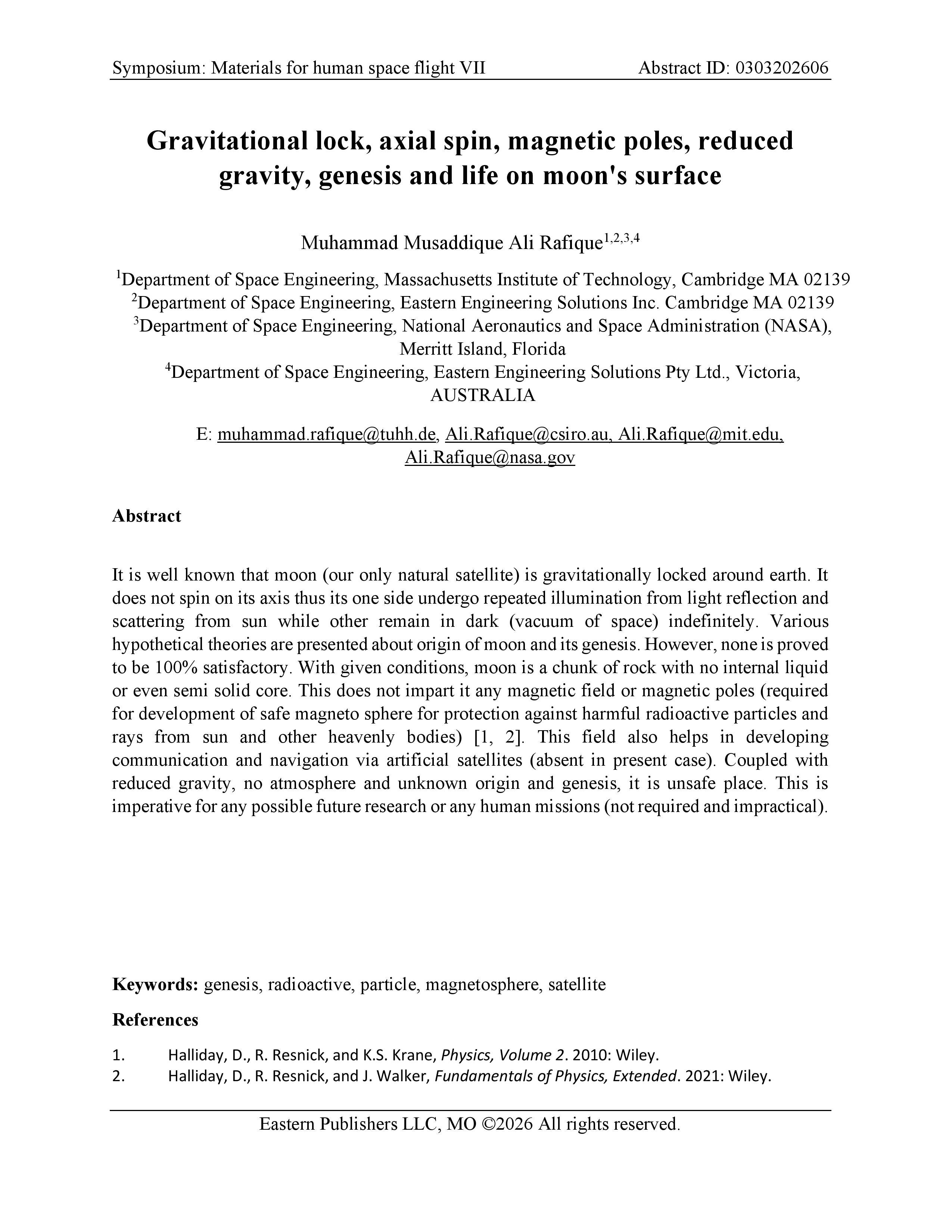 • MATERIALS FOR HUMAN SPACE FLIGHT VII ABSTRACT ID: 0303202604 April 7, 2026