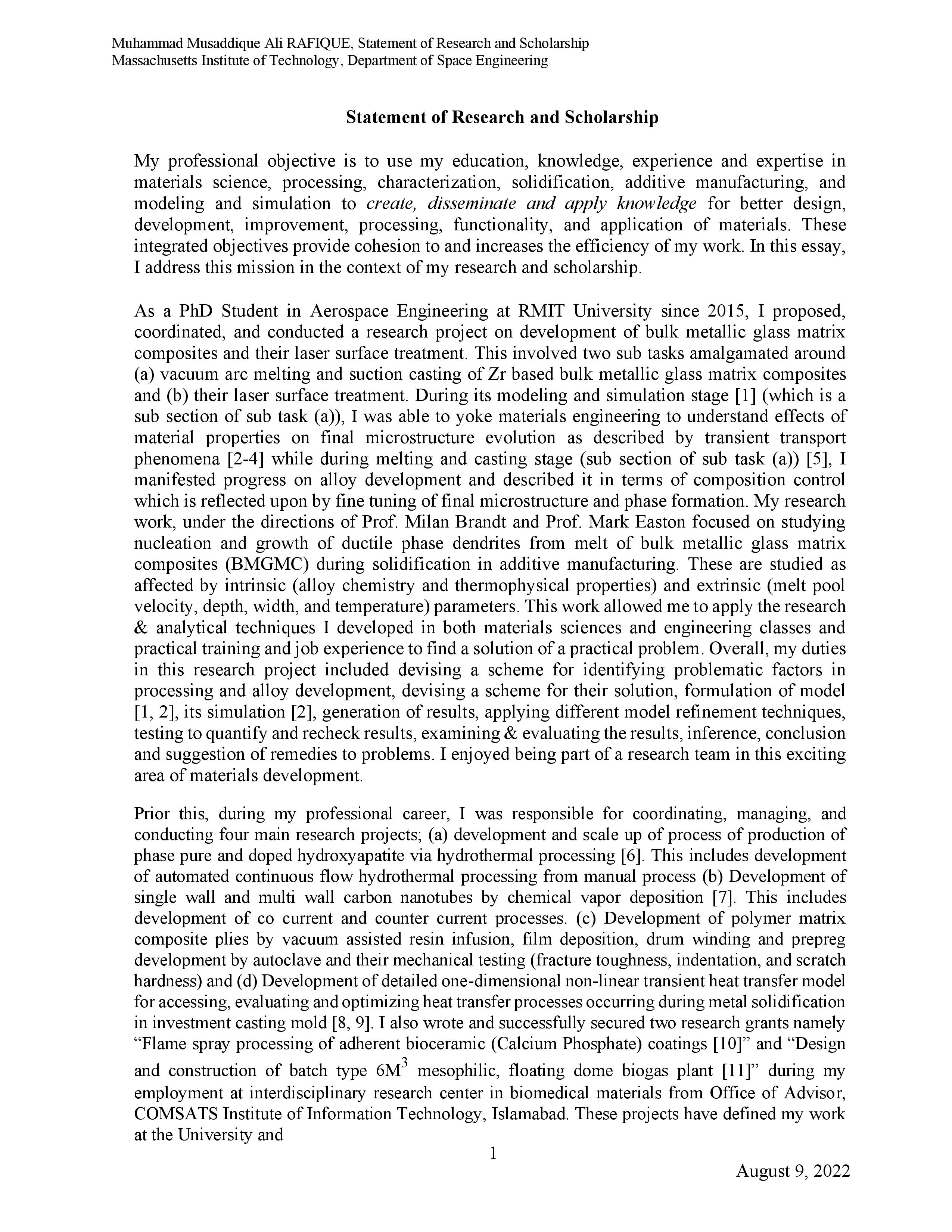 Master of Science in Engineering (M.Sc. Engg.) – Astronautics and Manned Propulsion